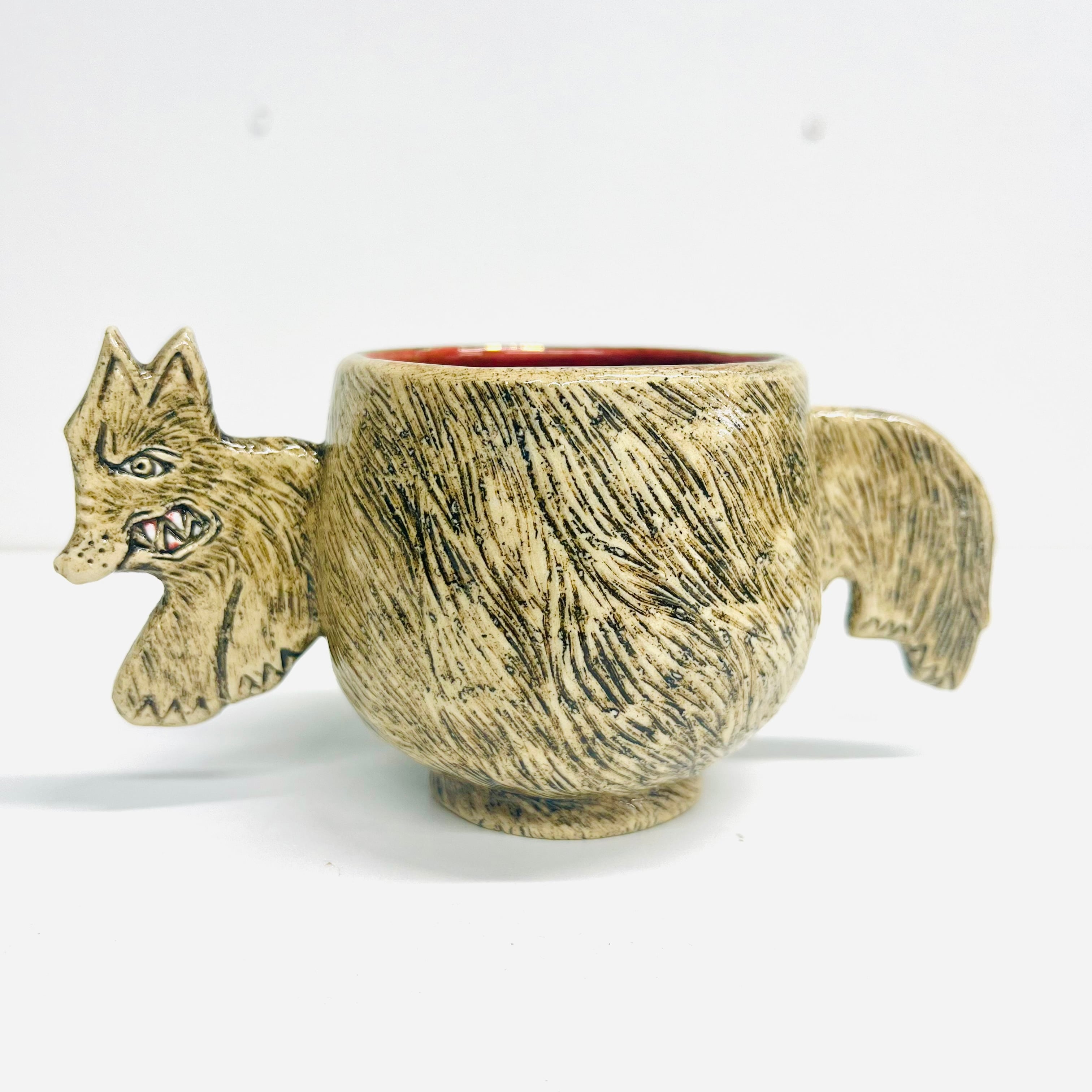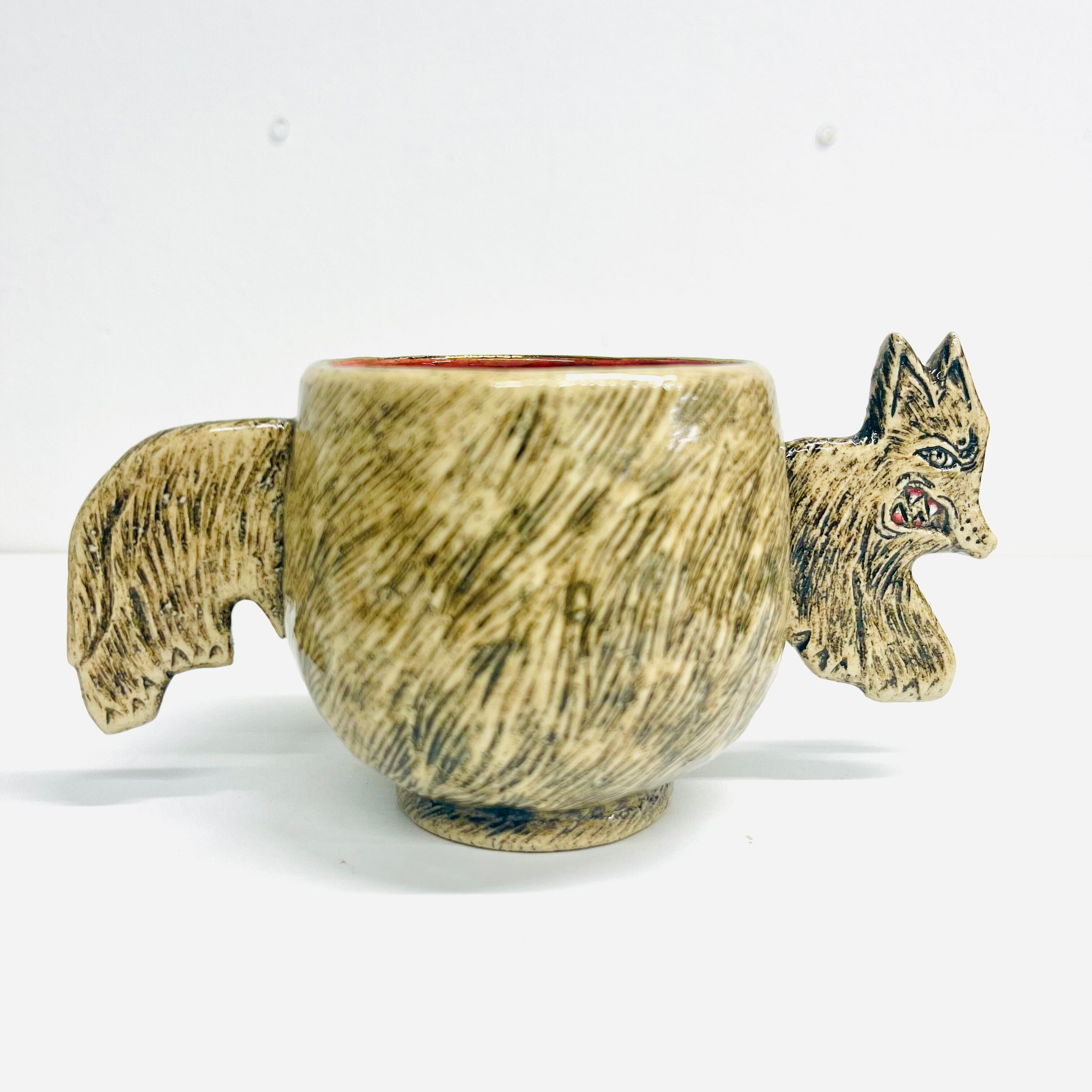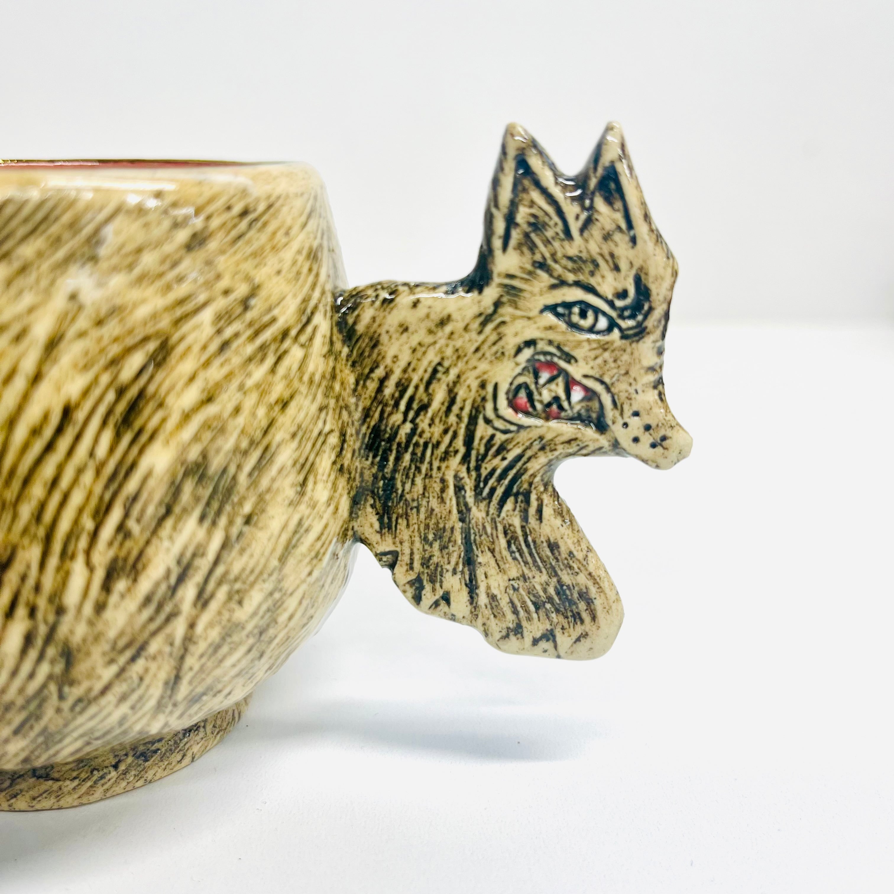 胴体部分が持ち手になっています。犬の表情や毛並みの細かな装飾は必見!このカップを使うことで、めったに出ない戌カップこの機会にぜひお楽しみください☆
