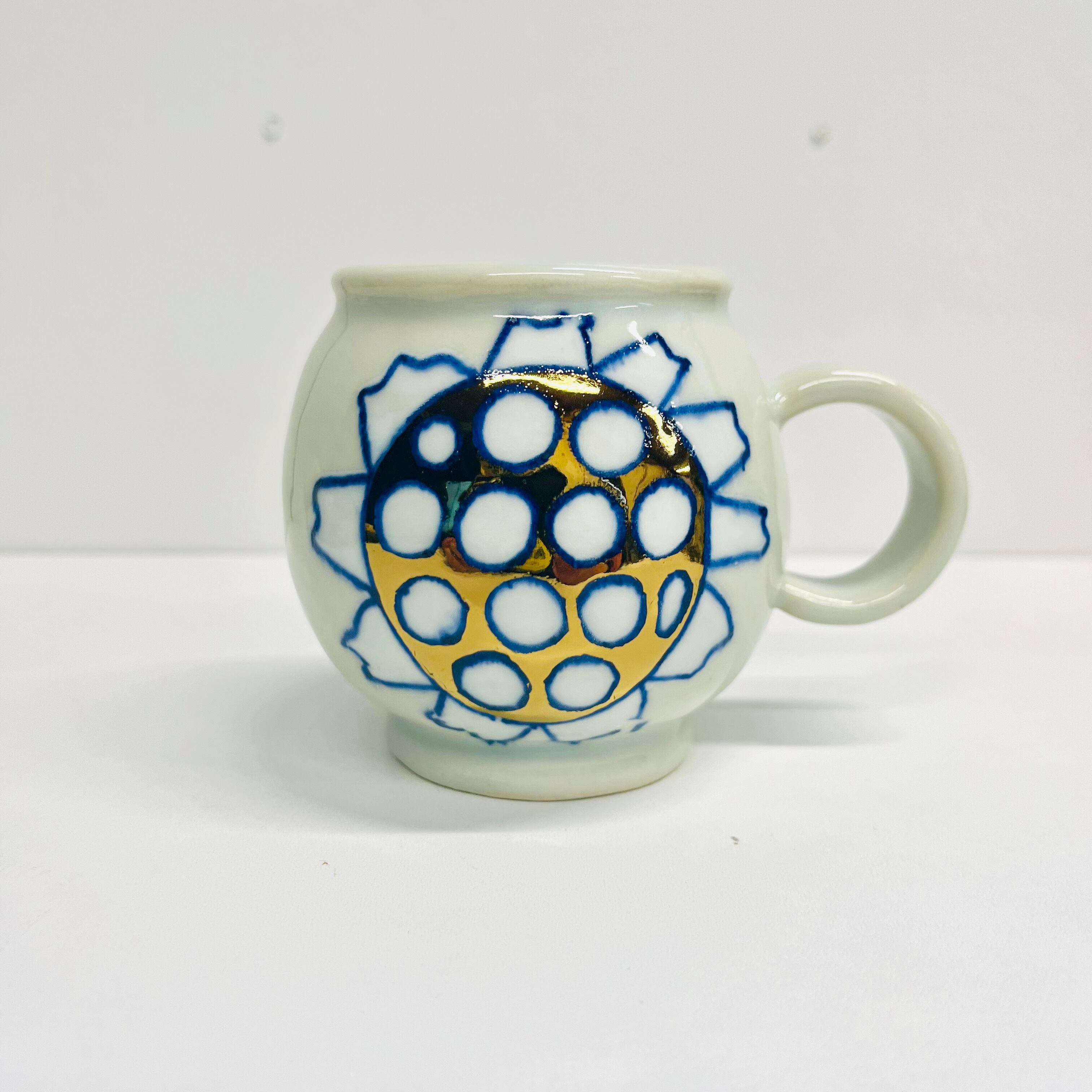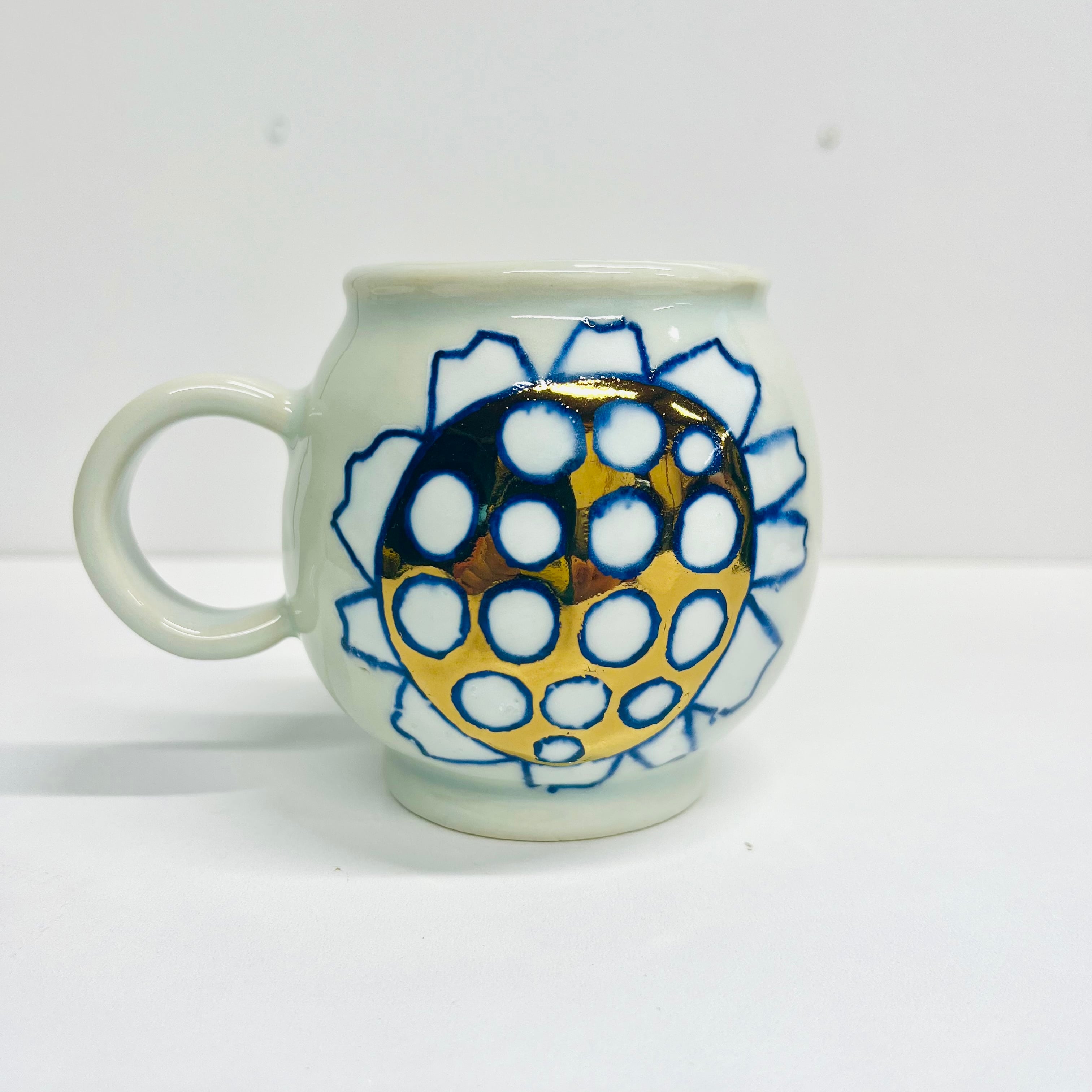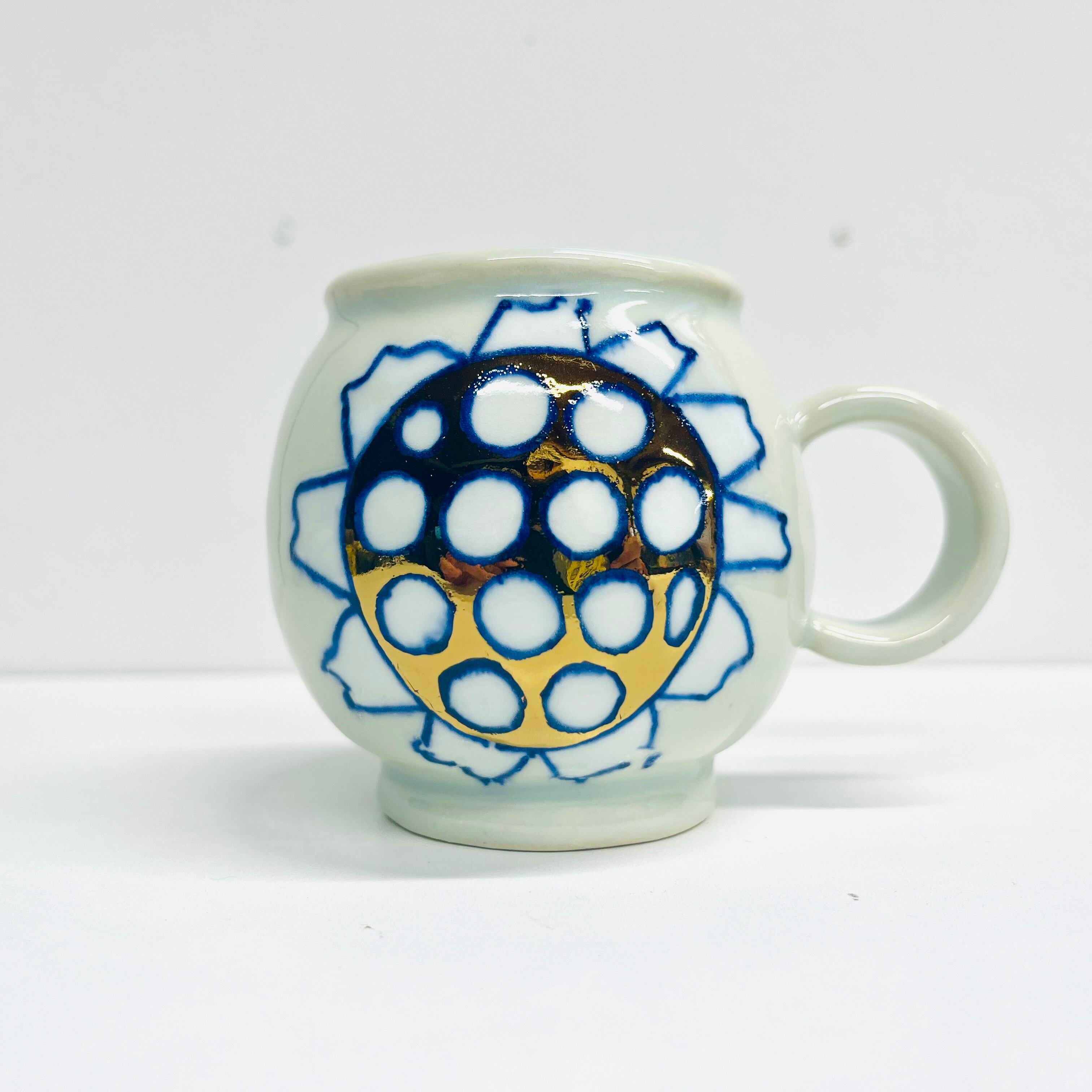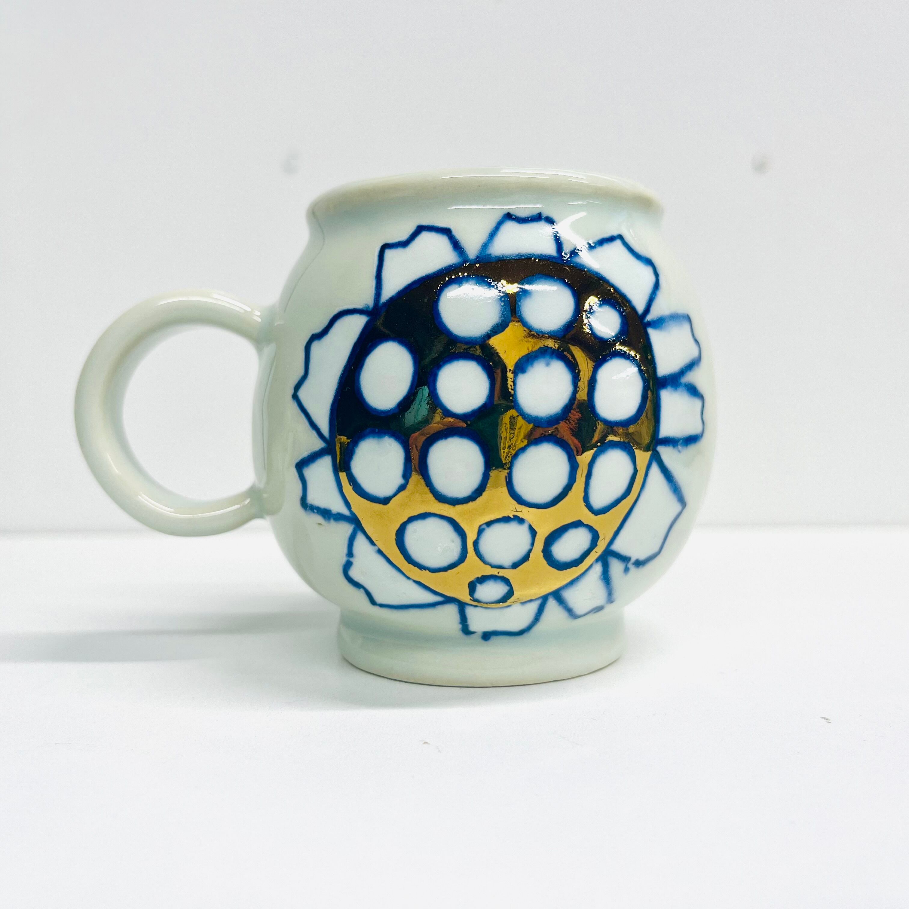 いつも元気いっぱいの花カップ落ち着きのある磁器風に仕上げてみました。リラックスタイムにぴったりな心癒されるデザインのカップです。優しい色合いの釉薬に静かな花模様が美しく映えます☆
