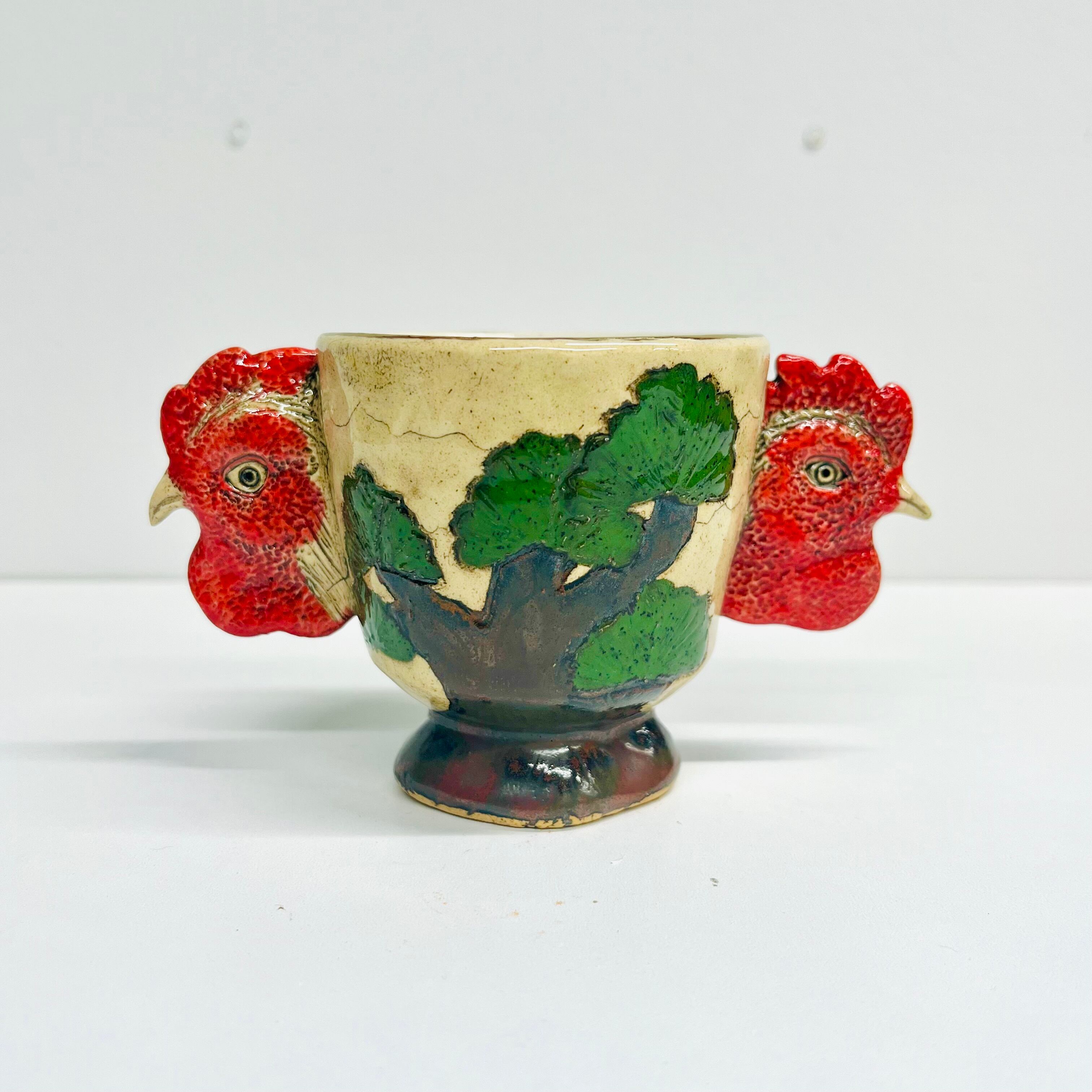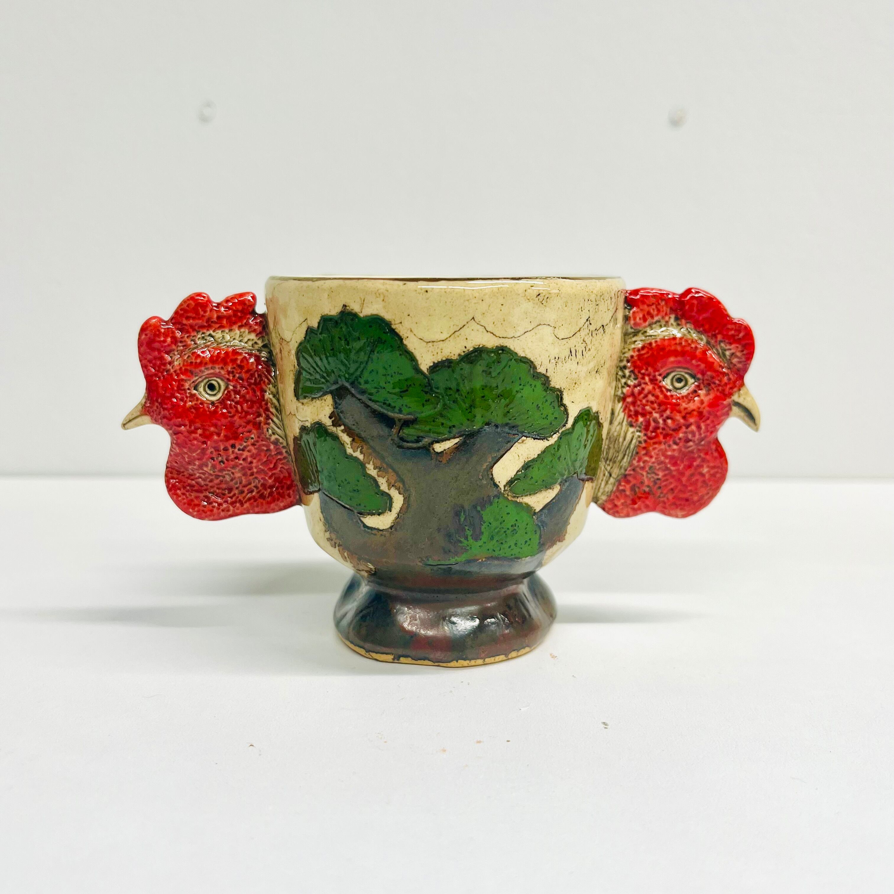 「庭にわ二羽鶏がいるコップ」