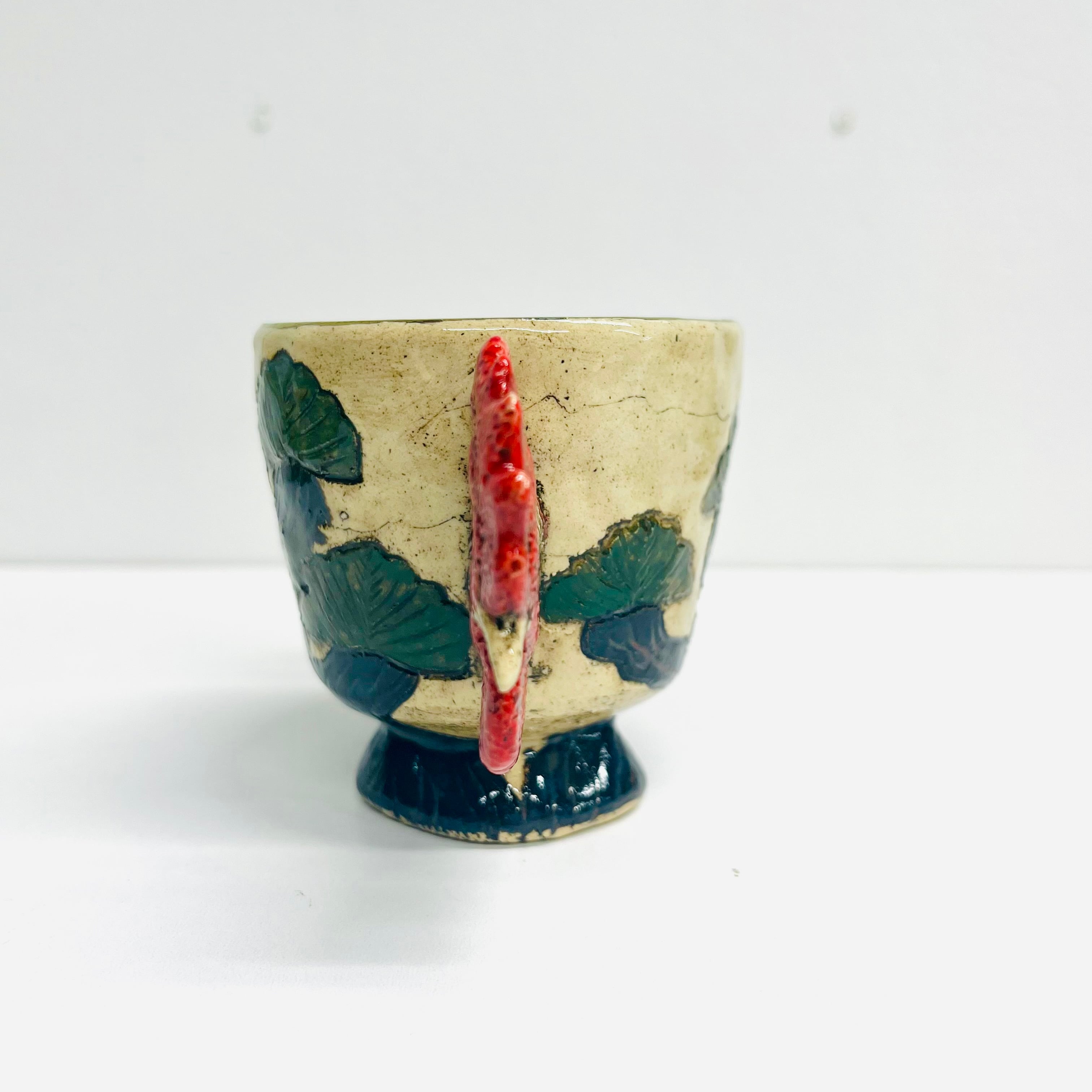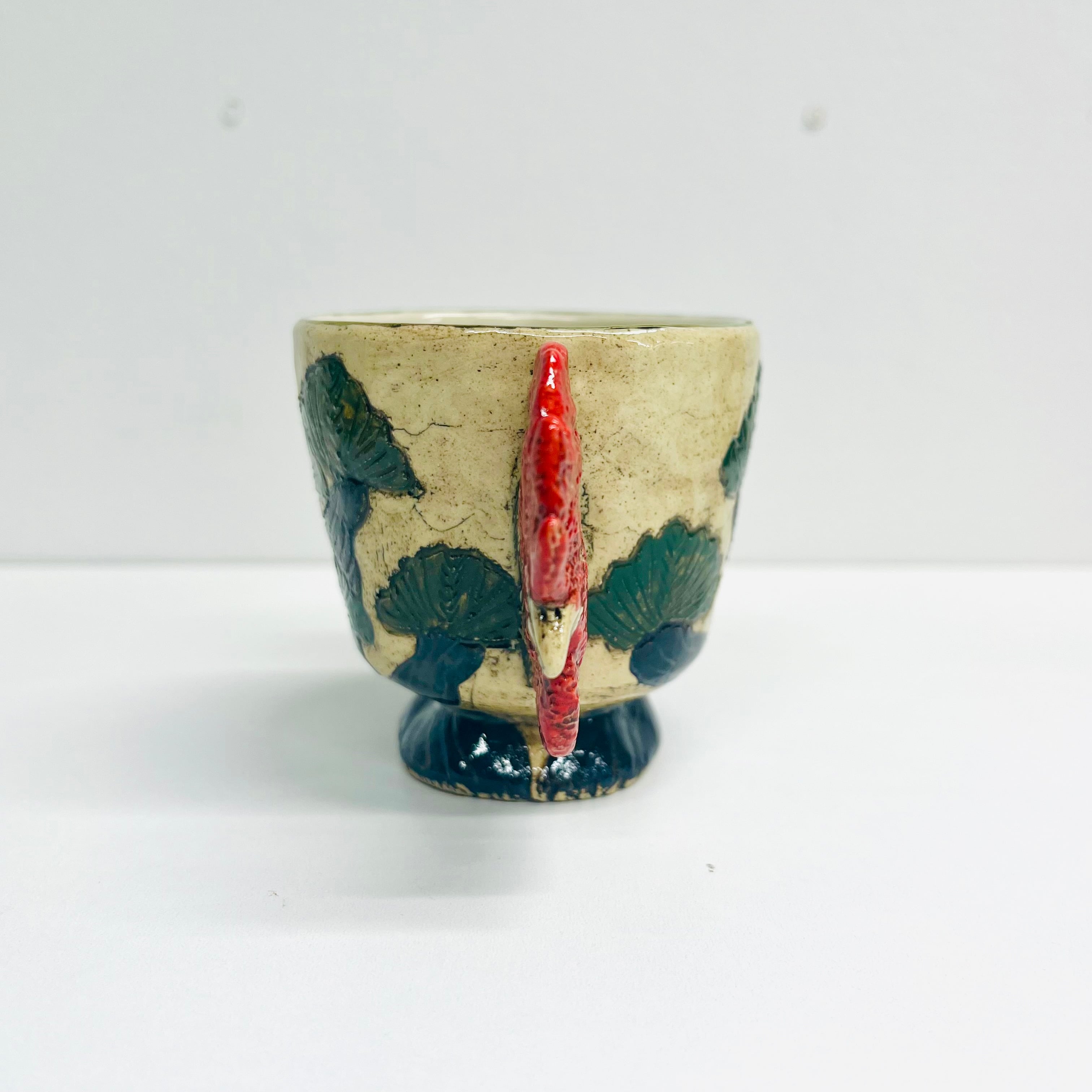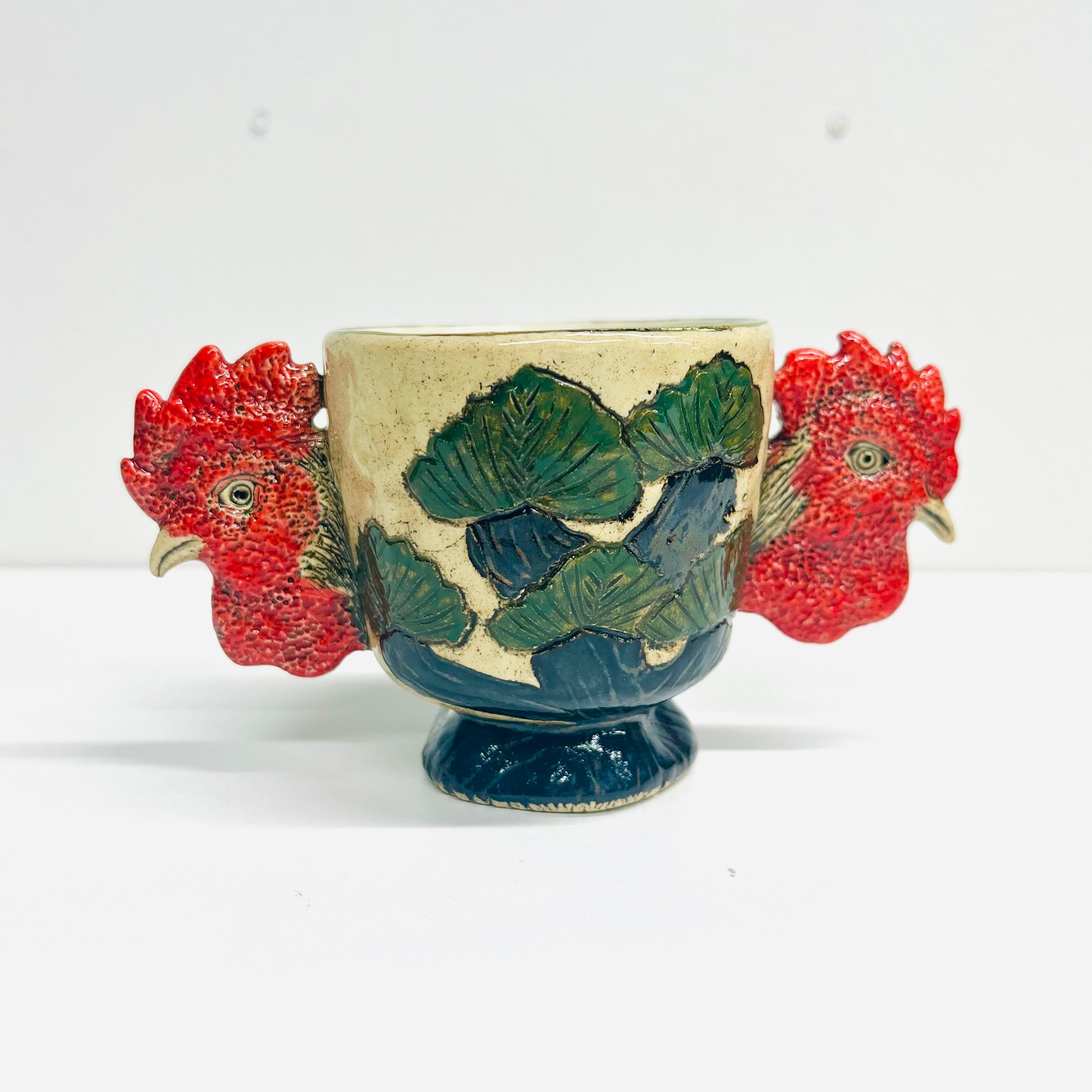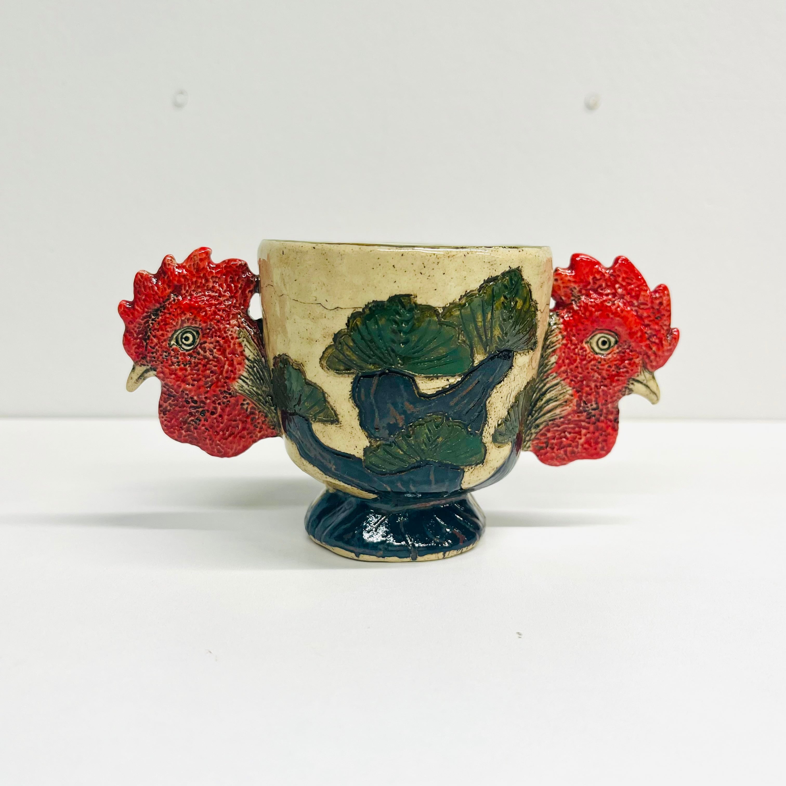 「庭にわ二羽鶏がいるコップ」