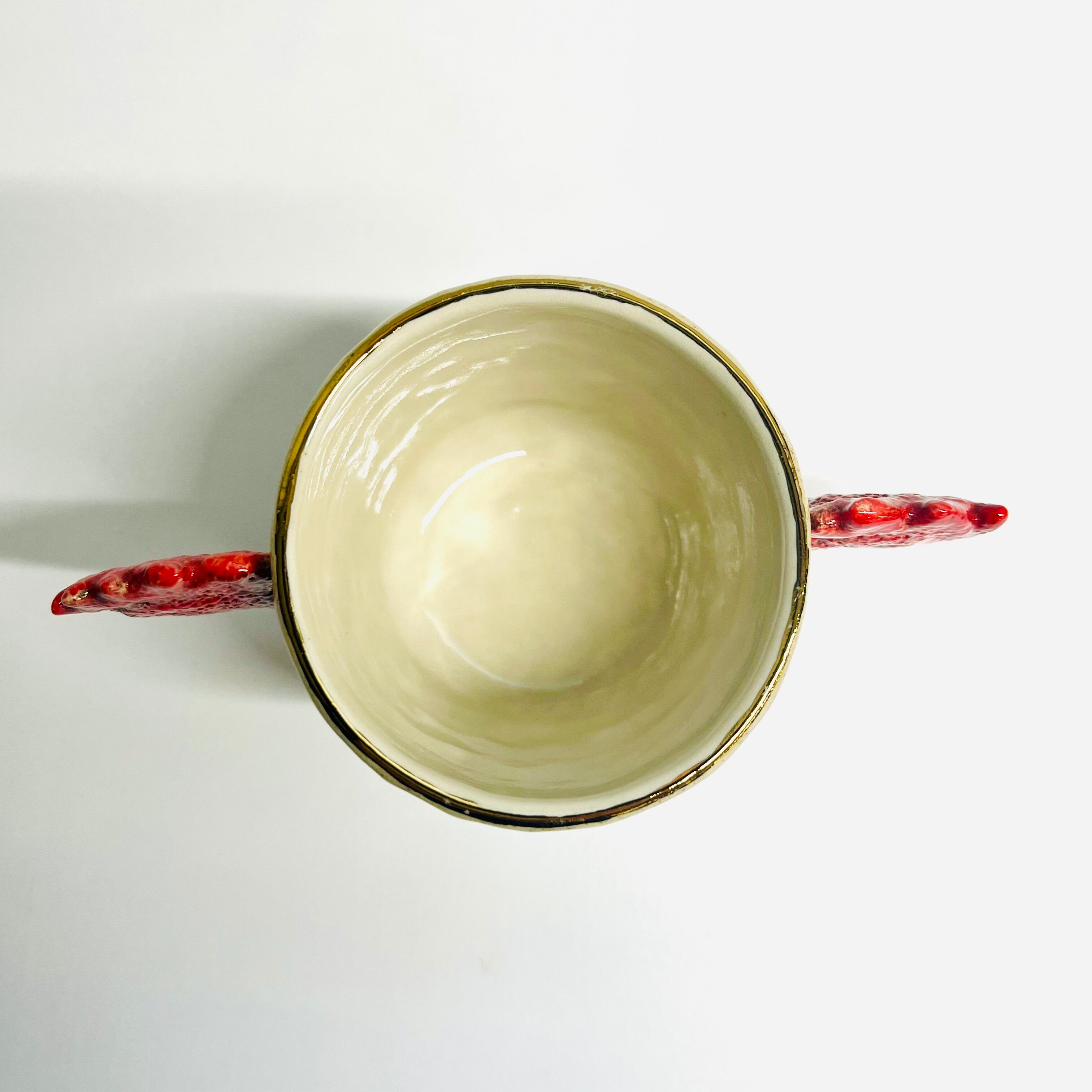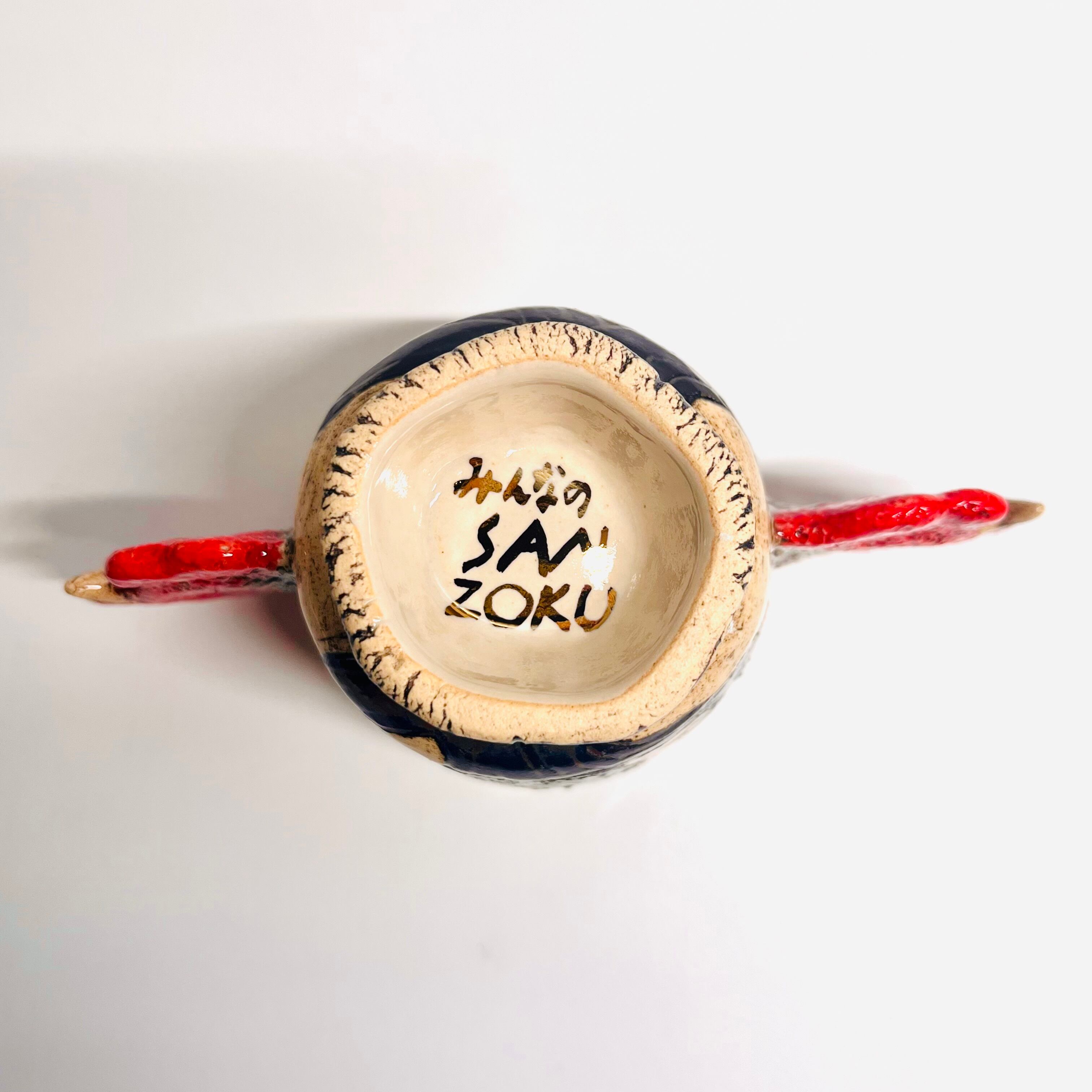 この『SANZOKU』は手びねりで製作された商品です。特に繊細な部分も含まれているため、取り扱いにはご注意ください。手洗いを推奨いたしますので、大切にお使いいただくためには、優しくお手入れをお願いいたします。