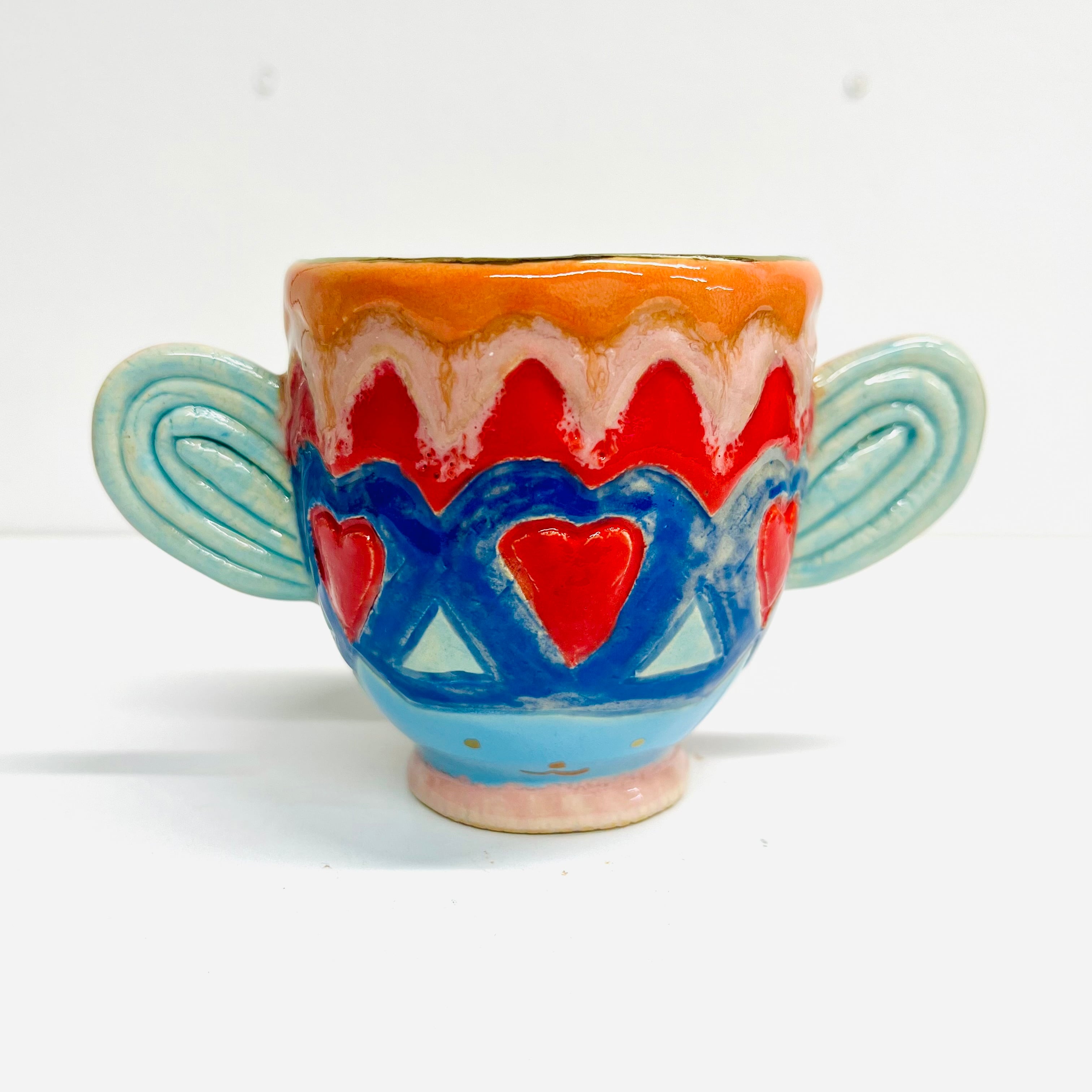 この『SANZOKU』は手びねりで製作された商品です。特に繊細な部分も含まれているため、取り扱いにはご注意ください。手洗いを推奨いたしますので、大切にお使いいただくためには、優しくお手入れをお願いいたします。