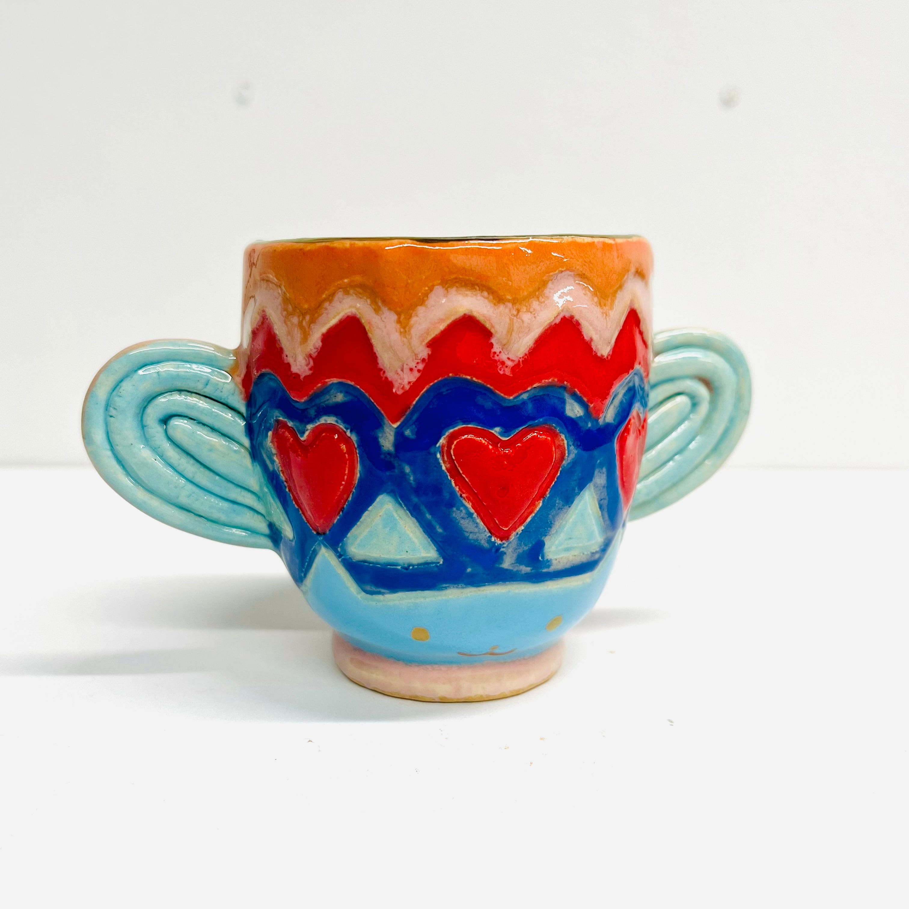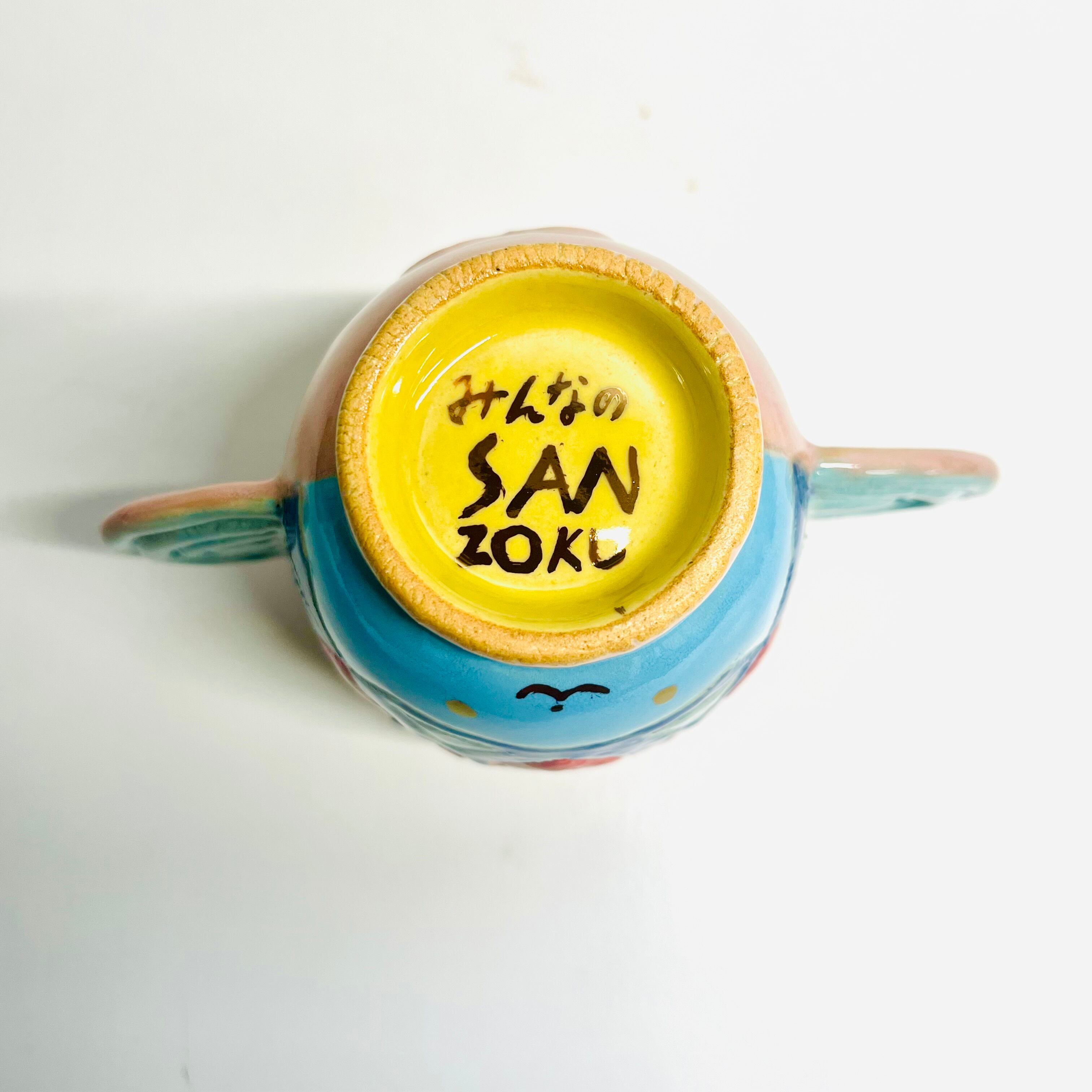 この『SANZOKU』は手びねりで製作された商品です。特に繊細な部分も含まれているため、取り扱いにはご注意ください。手洗いを推奨いたしますので、大切にお使いいただくためには、優しくお手入れをお願いいたします。