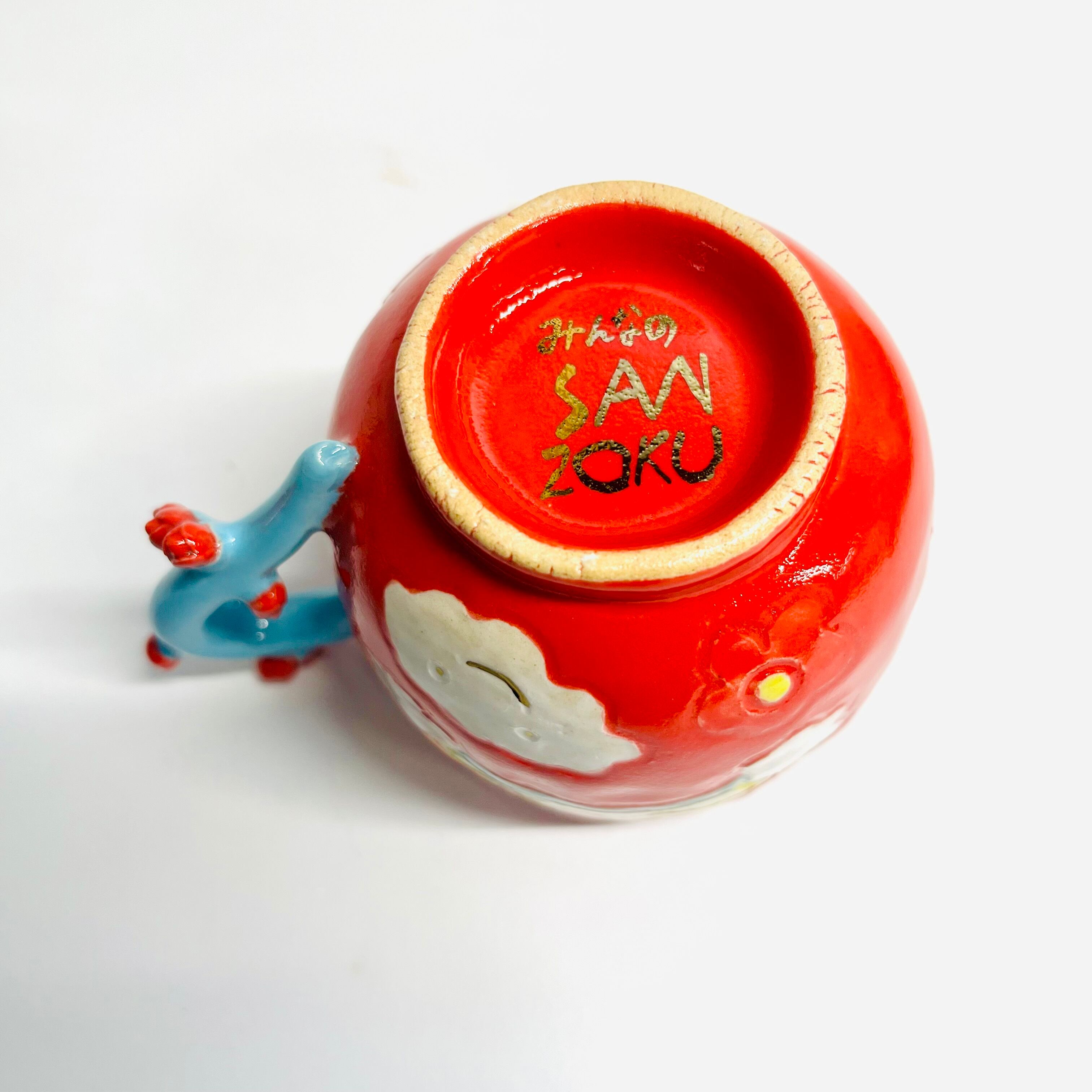 この『SANZOKU』は手びねり製作された商品です。特に繊細な部分も含まれているため、取り扱いにはご注意ください。手洗いを推奨いたしますので、大切にお使いいただくためには、優しくお手入れをお願いいたします。