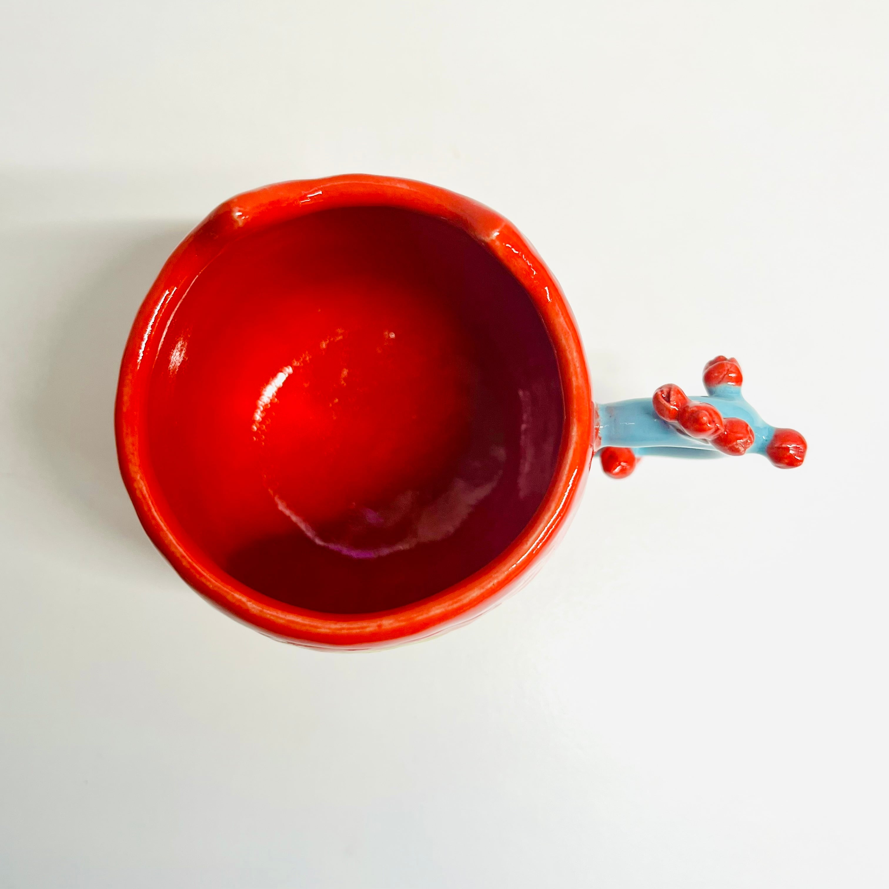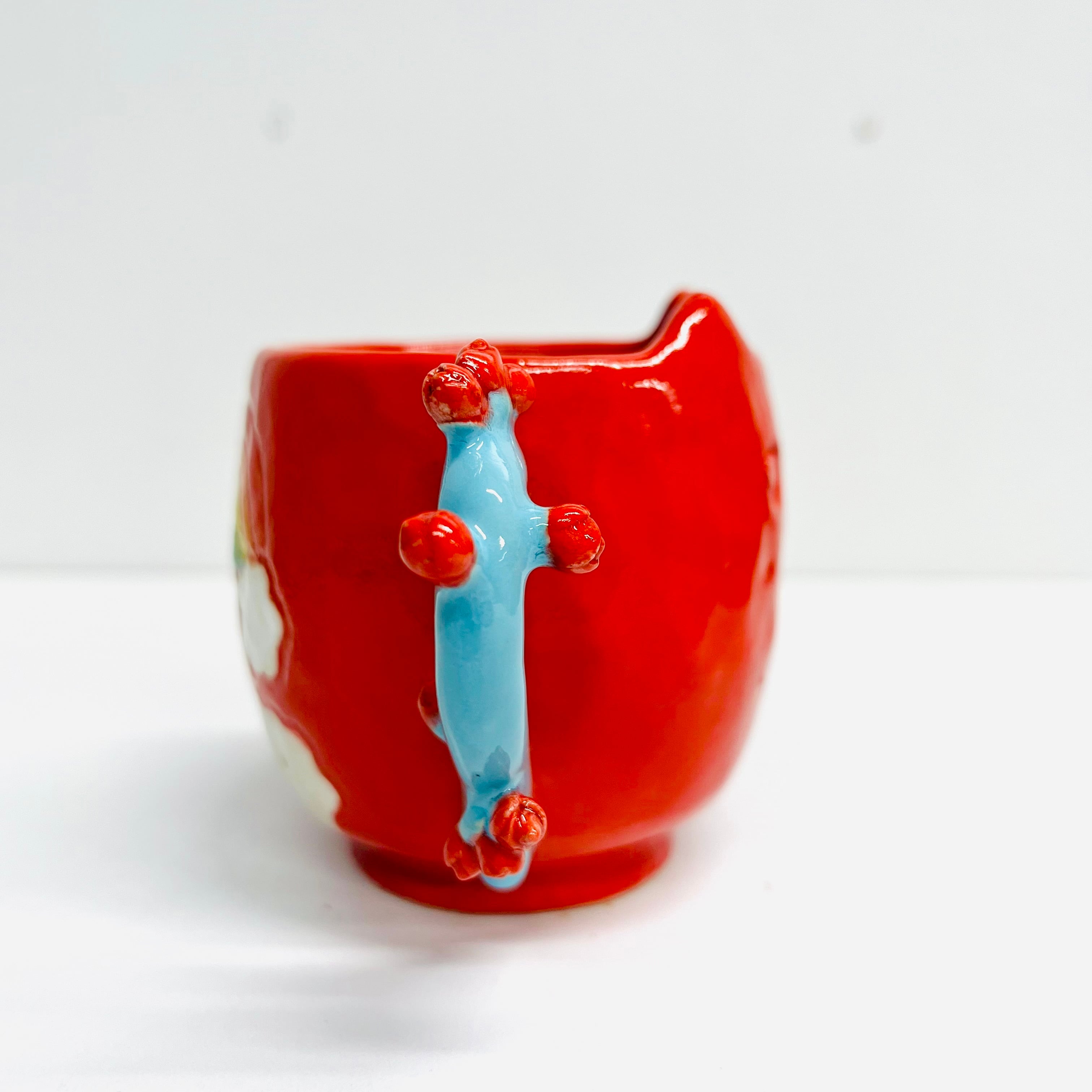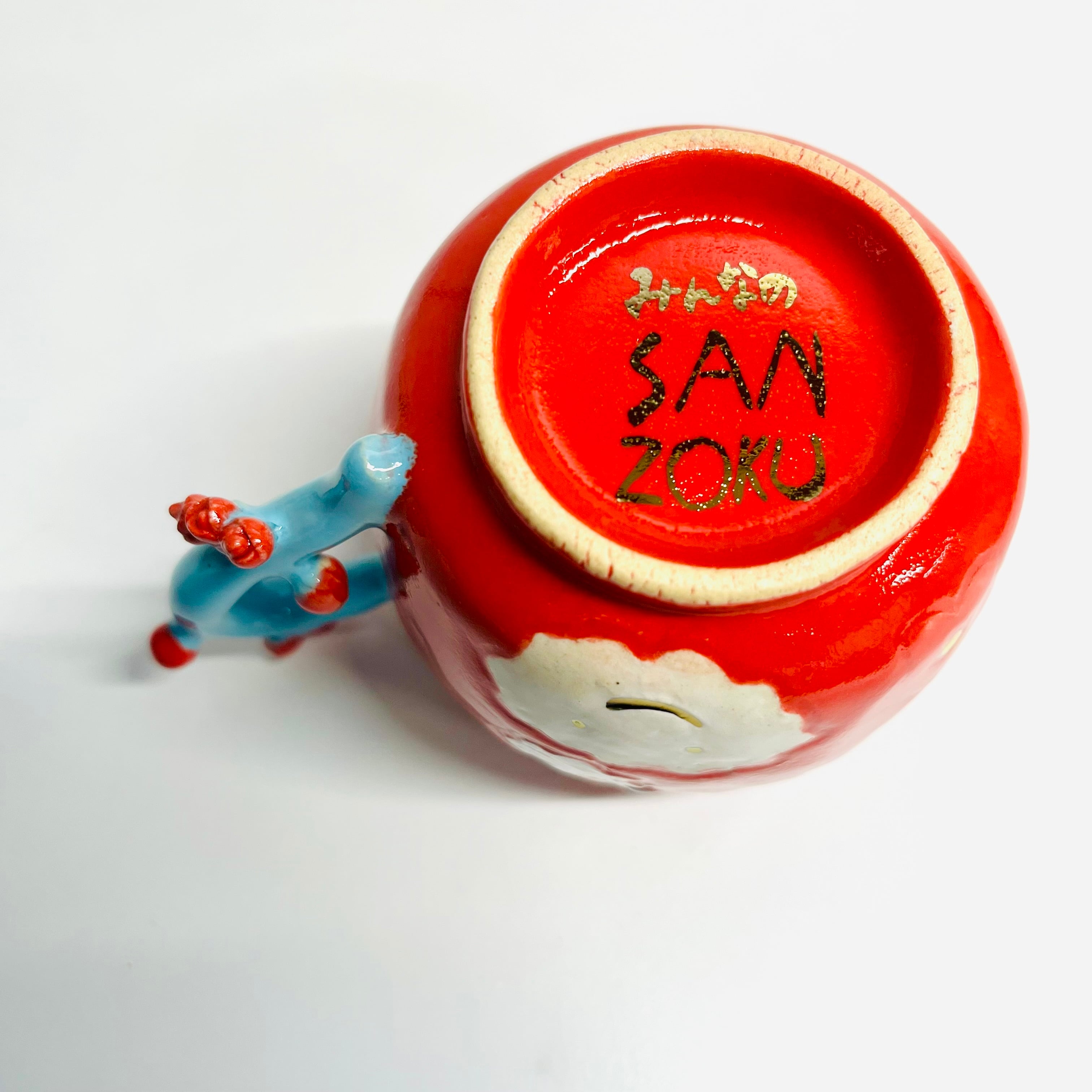この『SANZOKU』は手びねりで製作された商品です。特に繊細な部分も含まれているため、取り扱いにはご注意ください。手洗いを推奨いたしますので、大切にお使いいただくためには、優しくお手入れをお願いいたします。