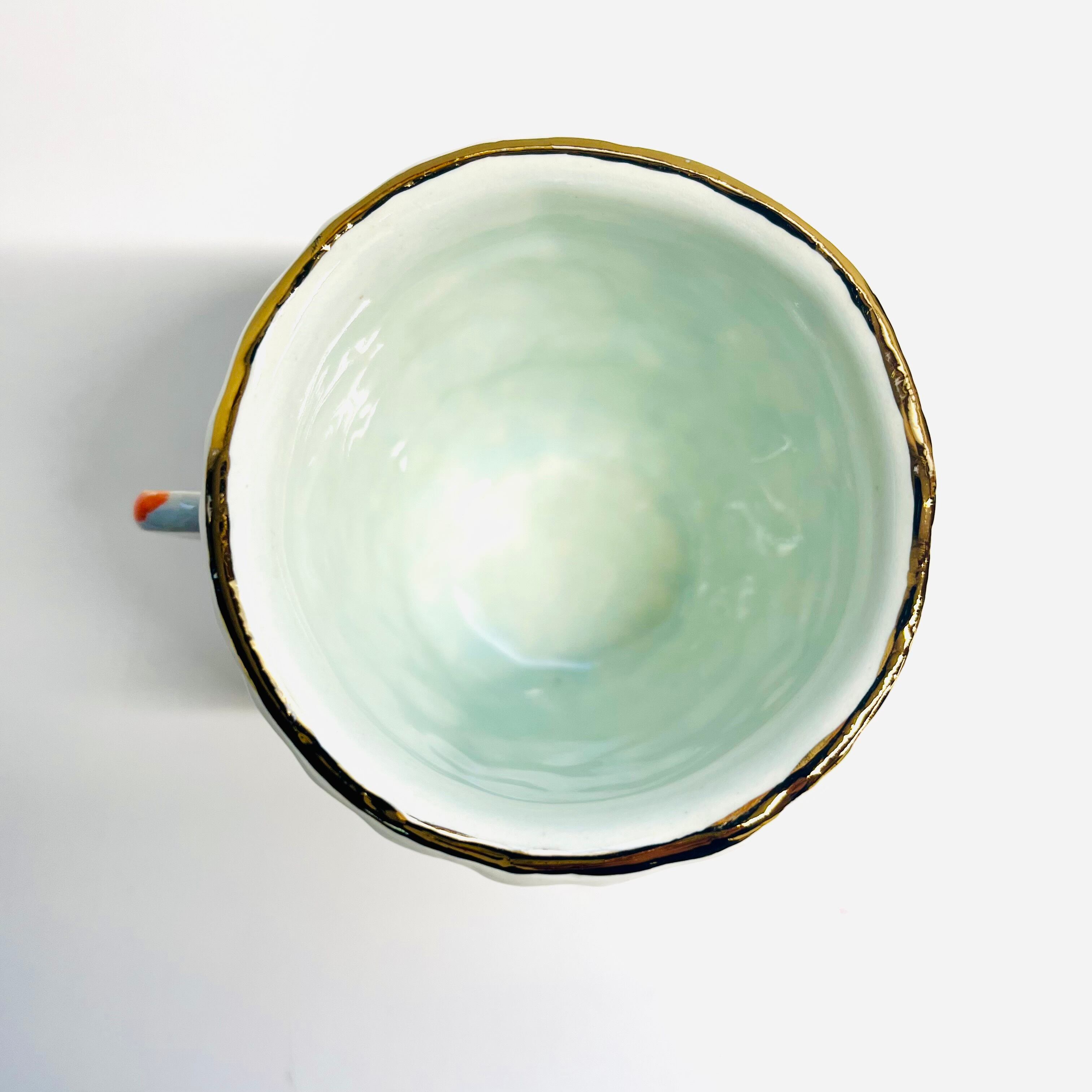 金や銀(金彩、銀彩)の部分に関しては、焼き付けてはおりますが、あくまで半永久の物になりますので、使用していると薄れてきたり色合いが変化したりします。また、固めのスポンジ等でで擦るととれてしまう事があります。時間の経過の雰囲気、味としてご理解頂けます様お願い致します。金彩の金の含有率は6%のものを使用しています。