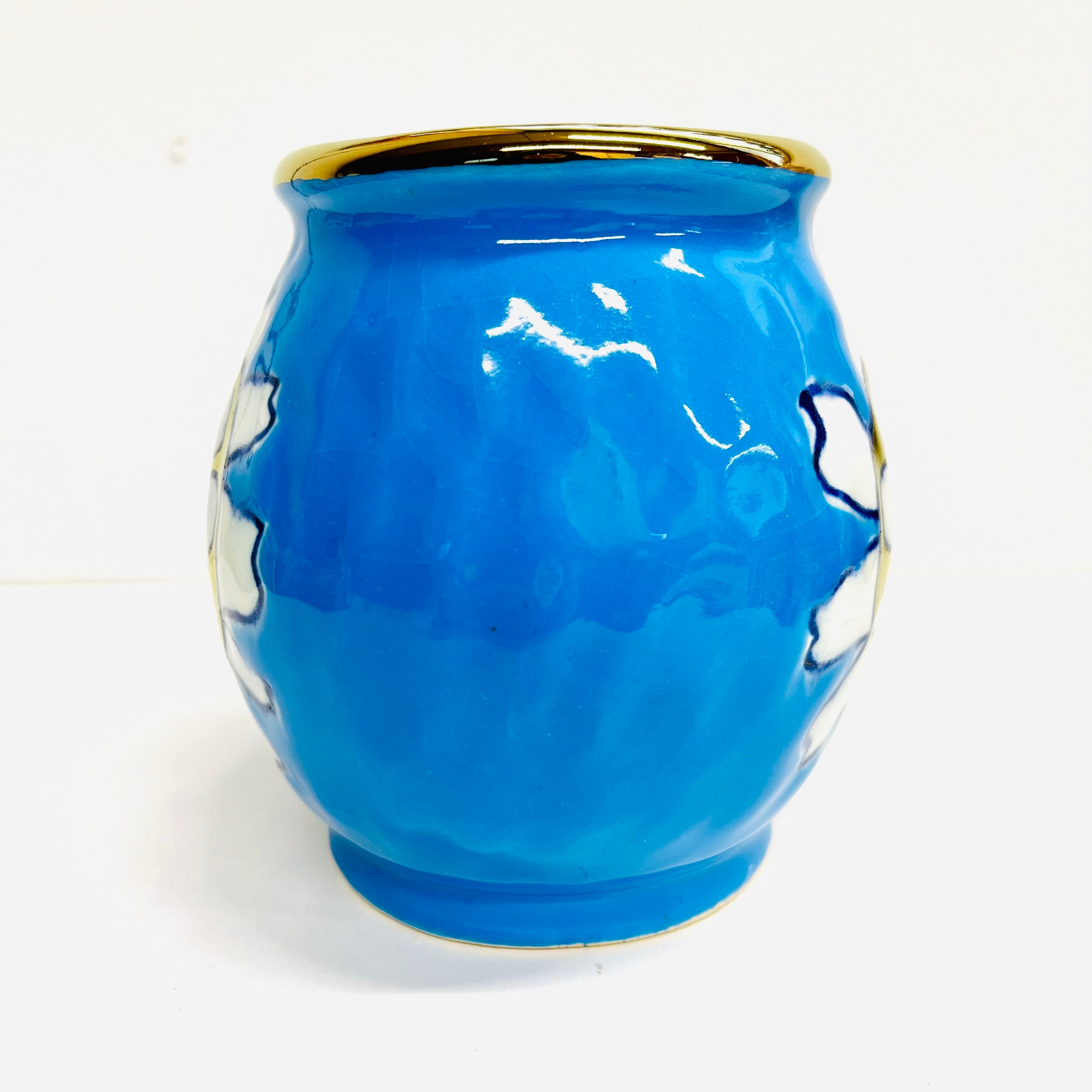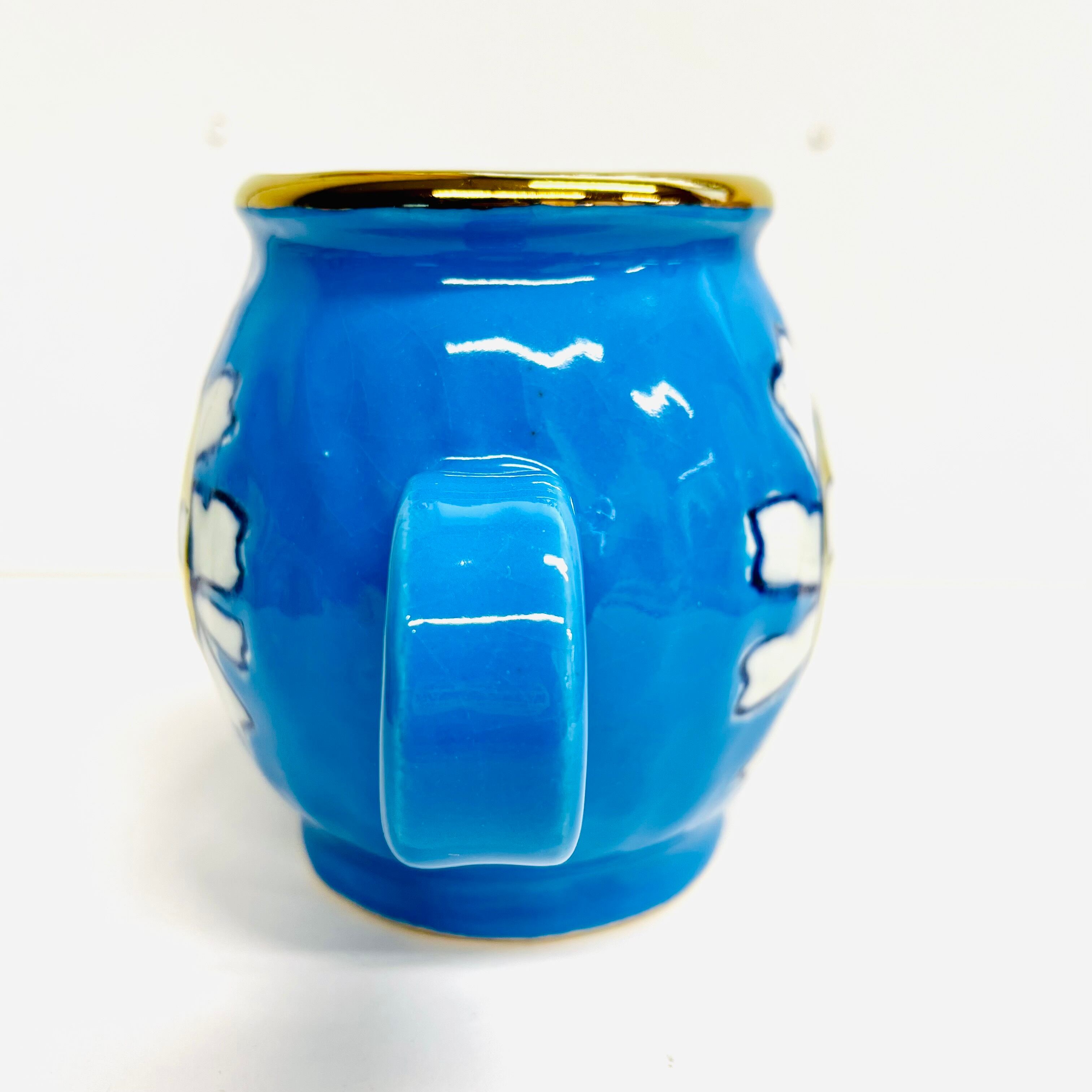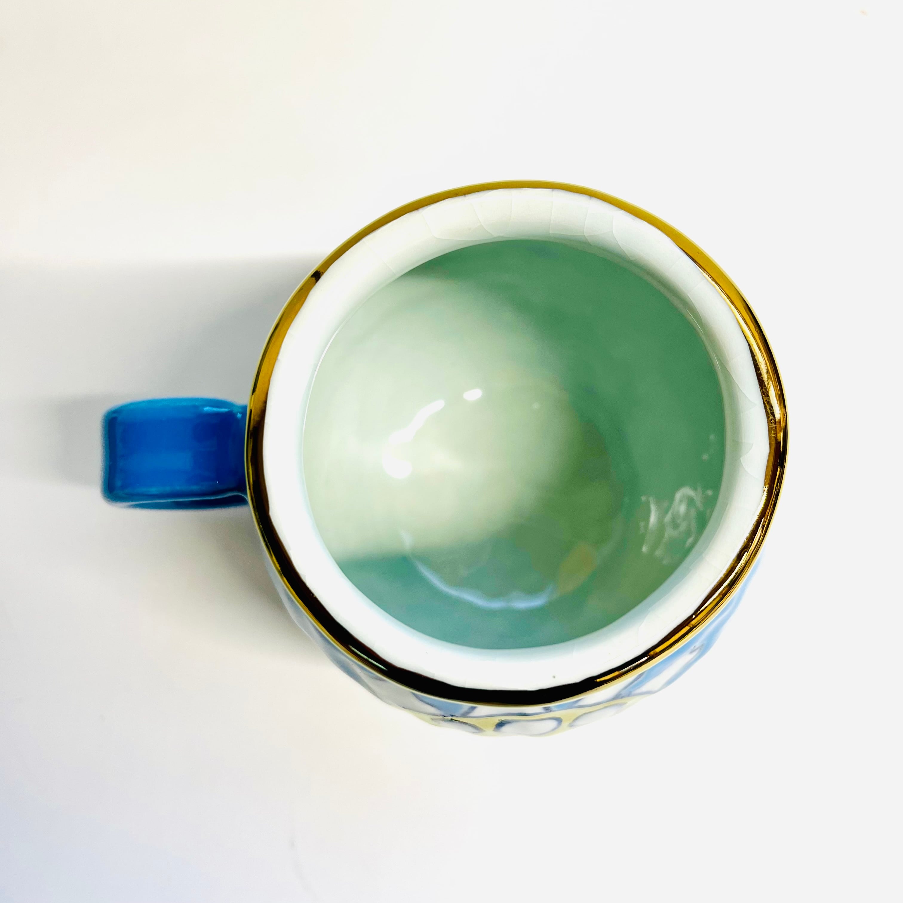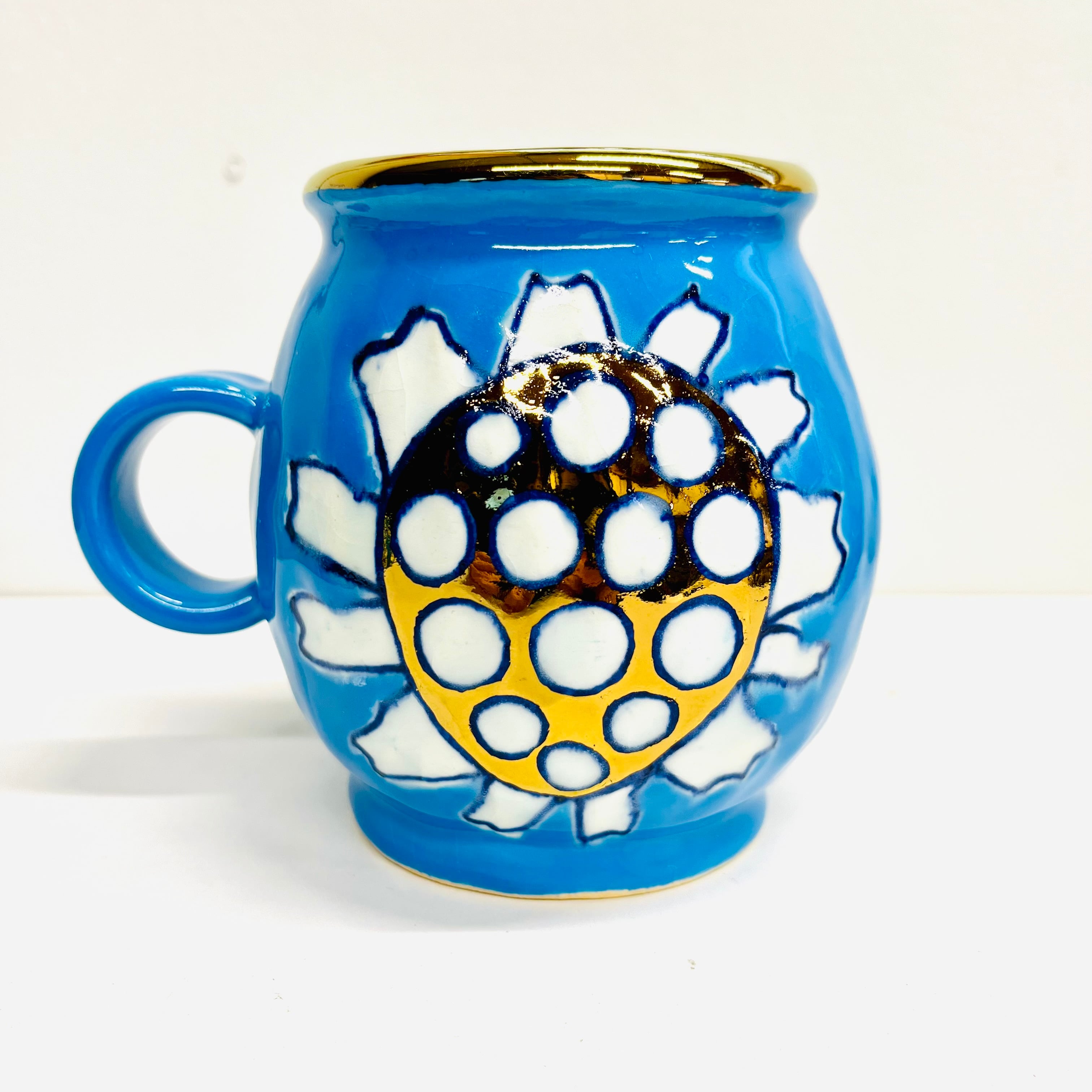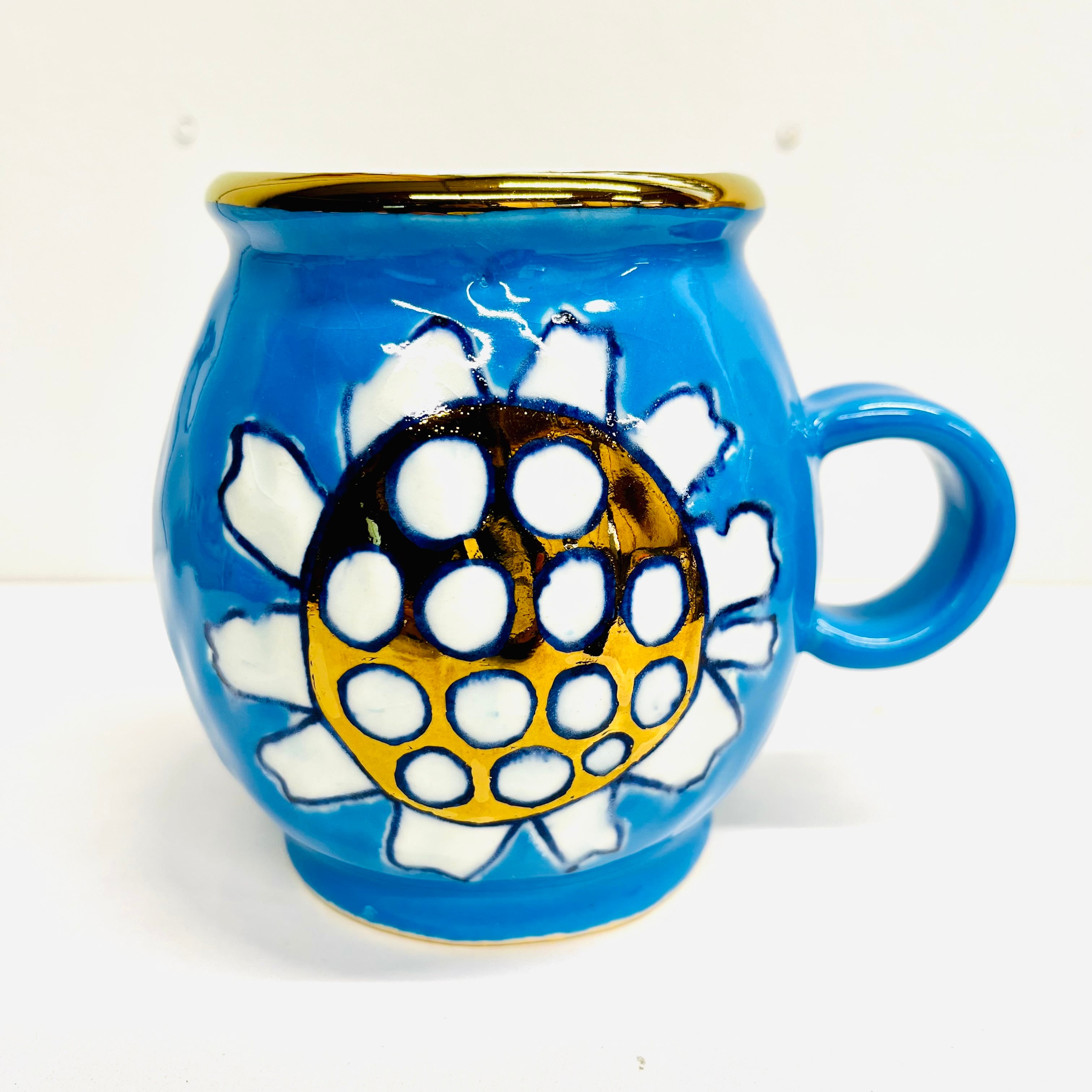 ブルーの釉薬に可愛い花柄が光ります☆