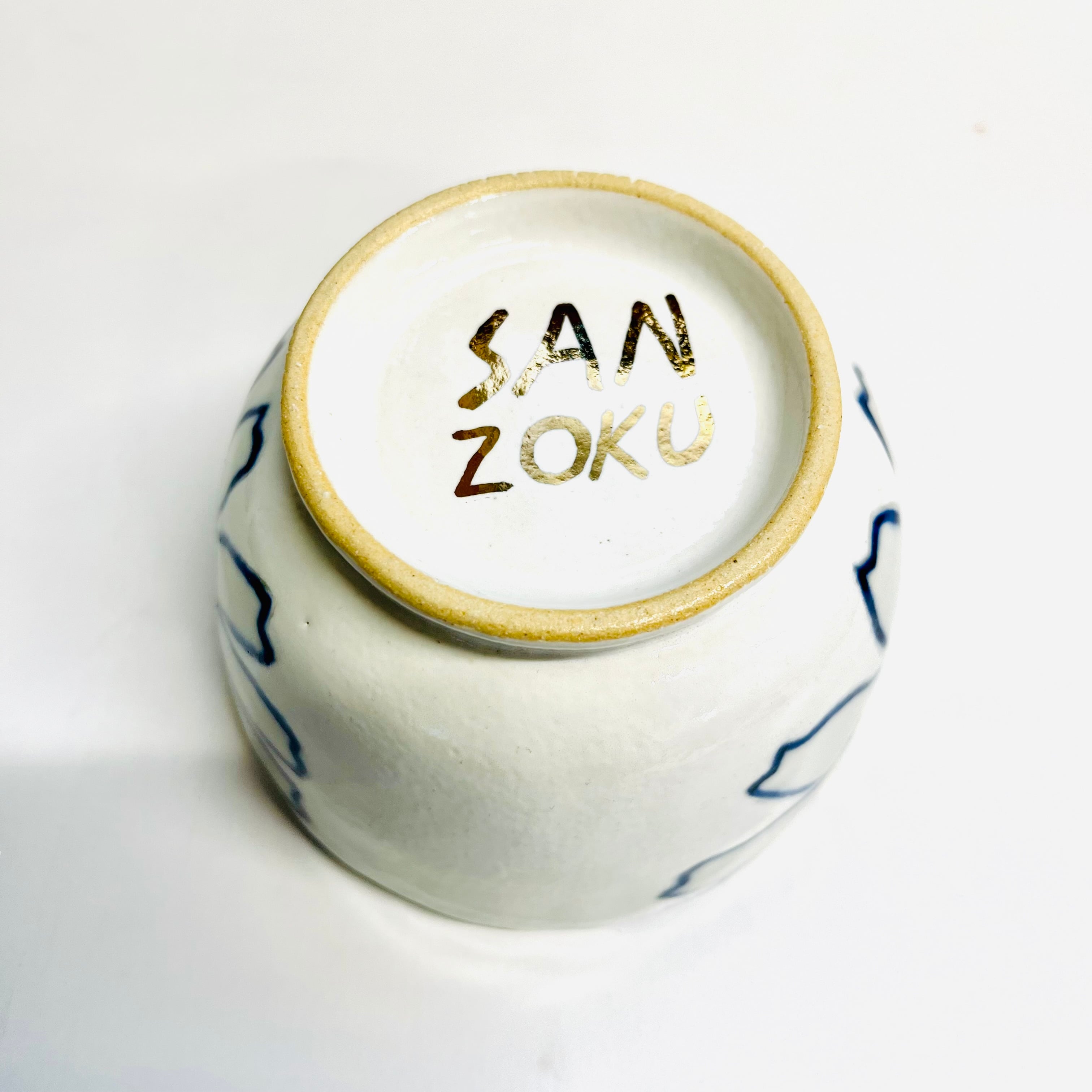 『sanzoku』は手びねりで作られている一点ものとなります。轆轤や、型などとの成形方法とは異なり手の指の力のみで土を圧縮して成形する為,