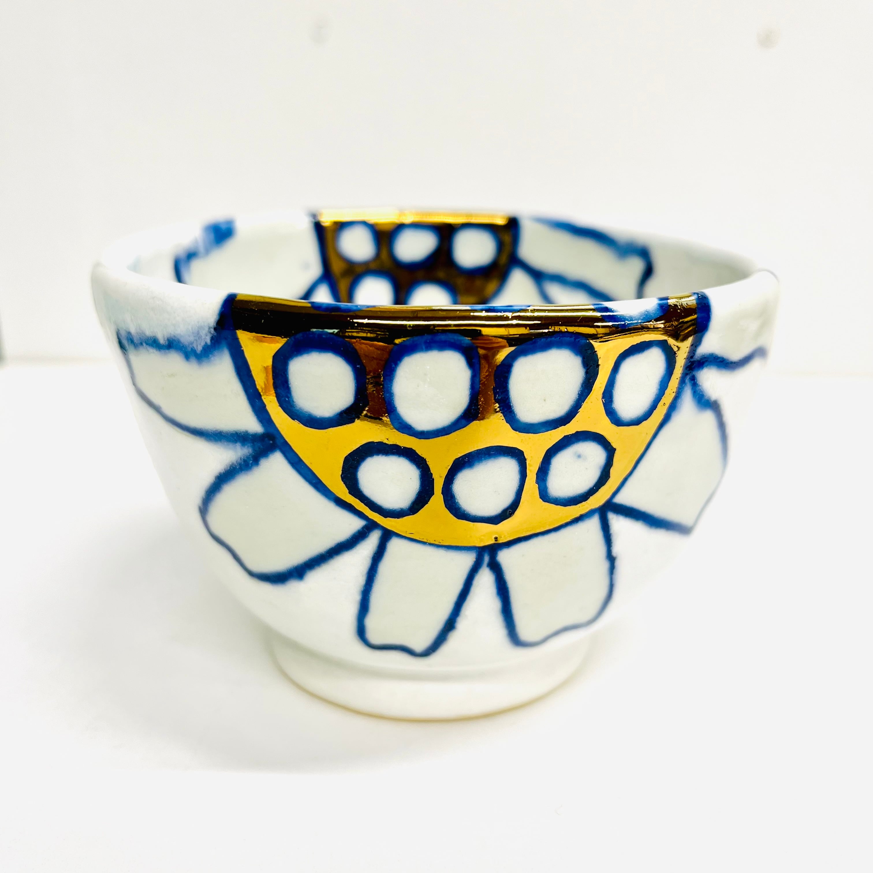 金や銀(金彩、銀彩)の部分に関しては、焼き付けてはおりますが、あくまで半永久の物になりますので、使用していると薄れてきたり色合いが変化したりします。また、固めのスポンジ等でで擦るととれてしまう事があります。時間の経過の雰囲気、味としてご理解頂けます様お願い致します。金彩の金の含有率は6%のものを使用しています。