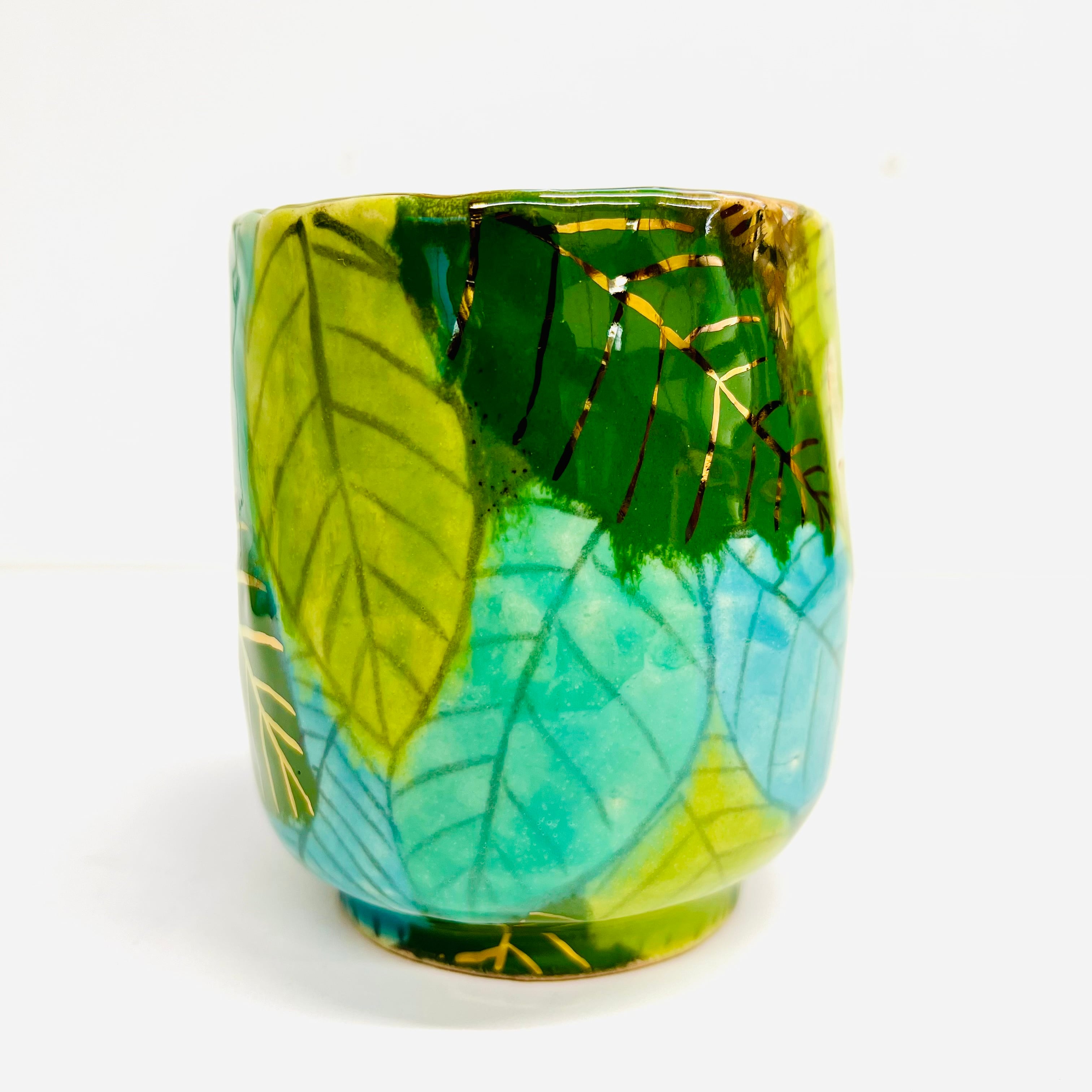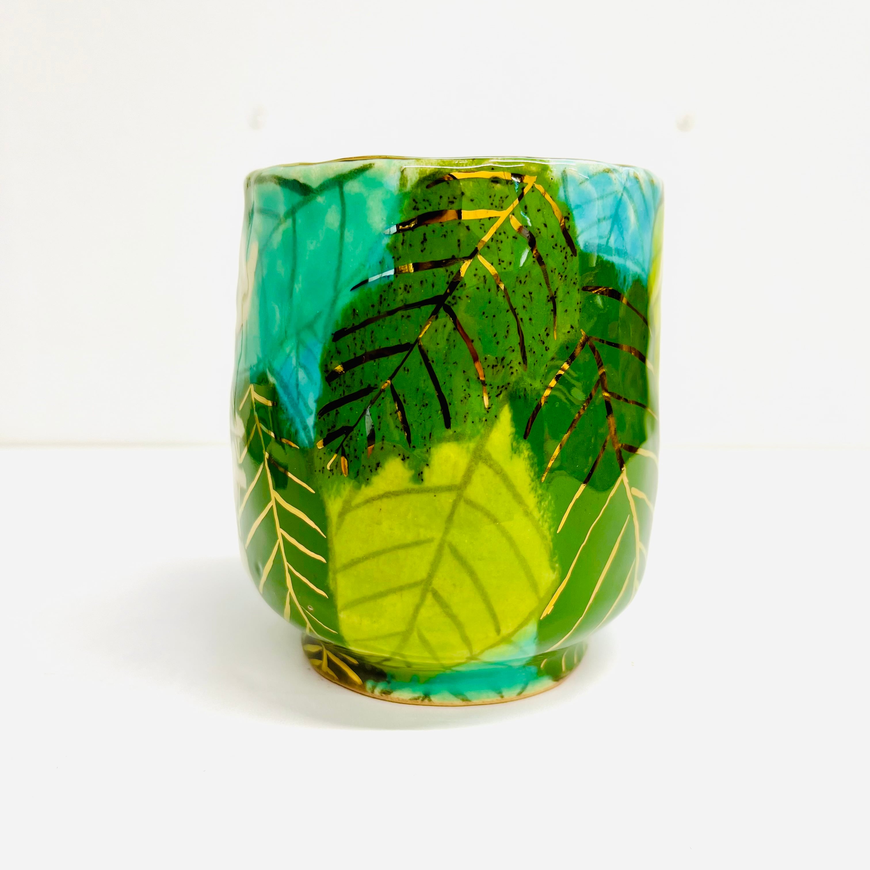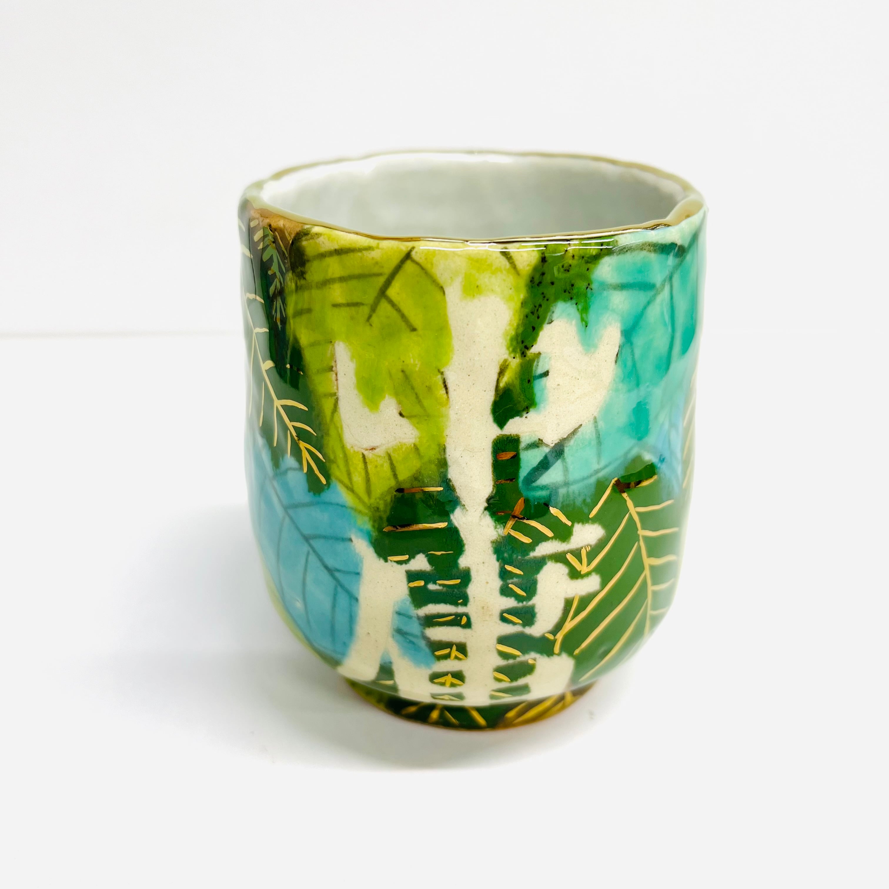 豪華な葉っぱに溢れる中庸湯呑みです。
