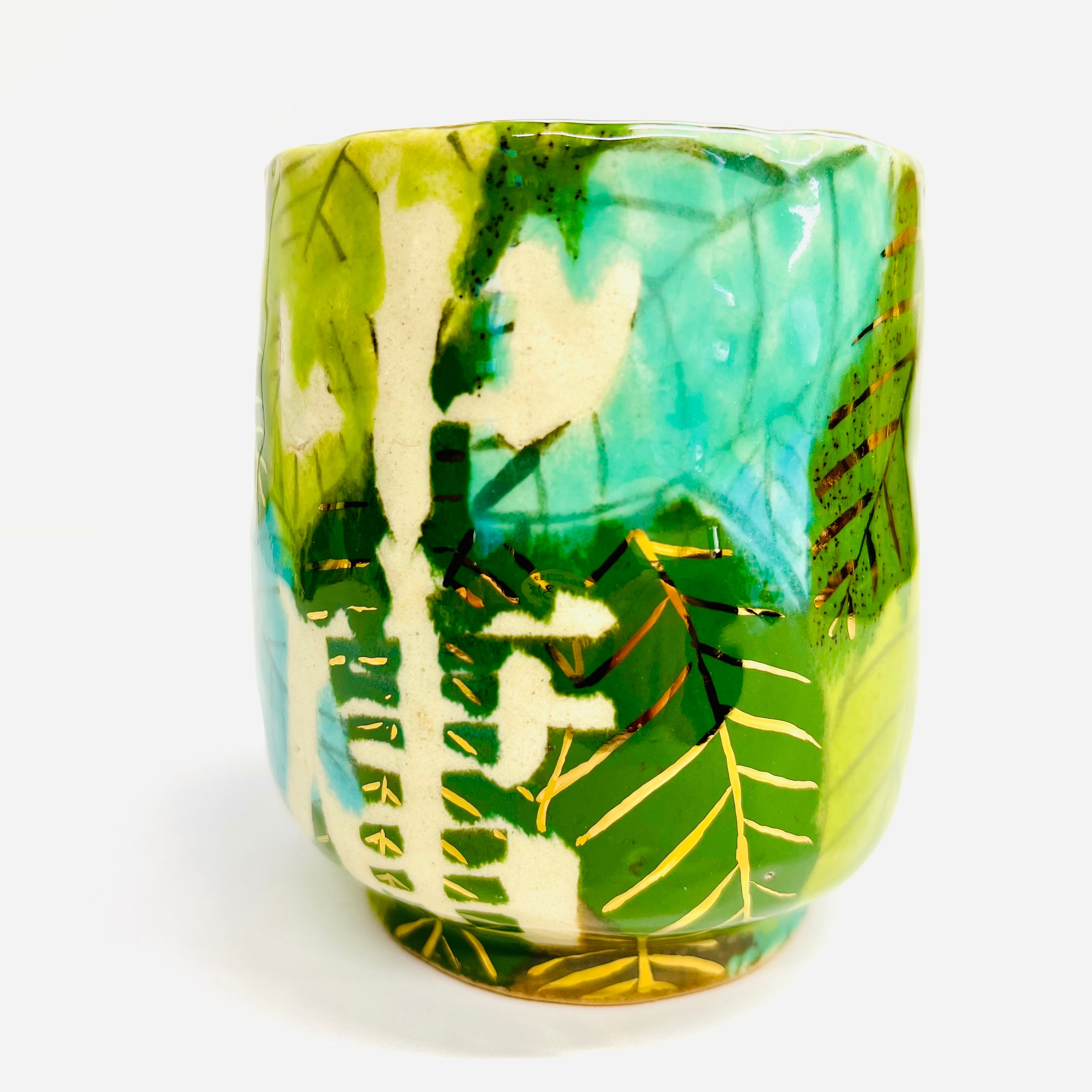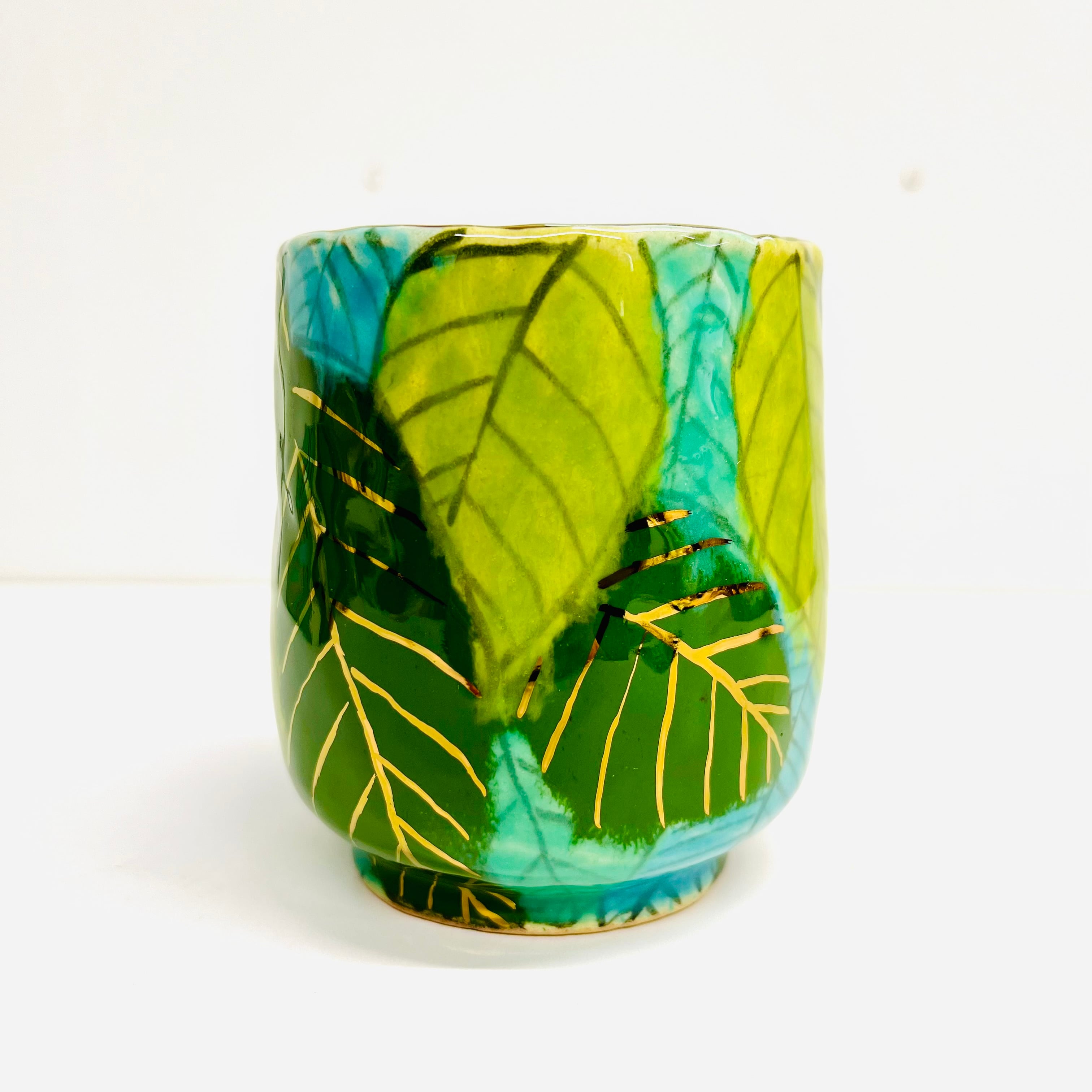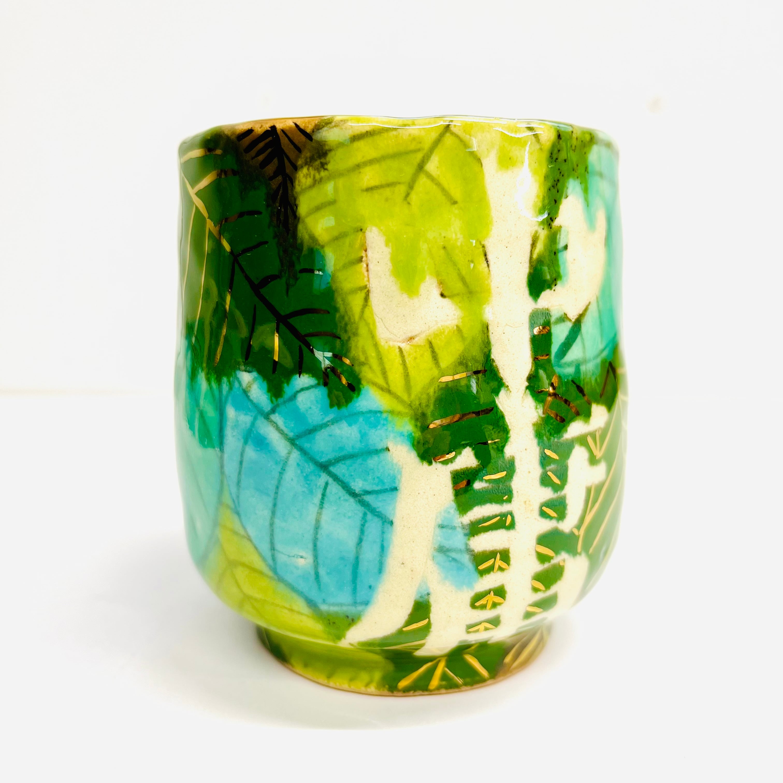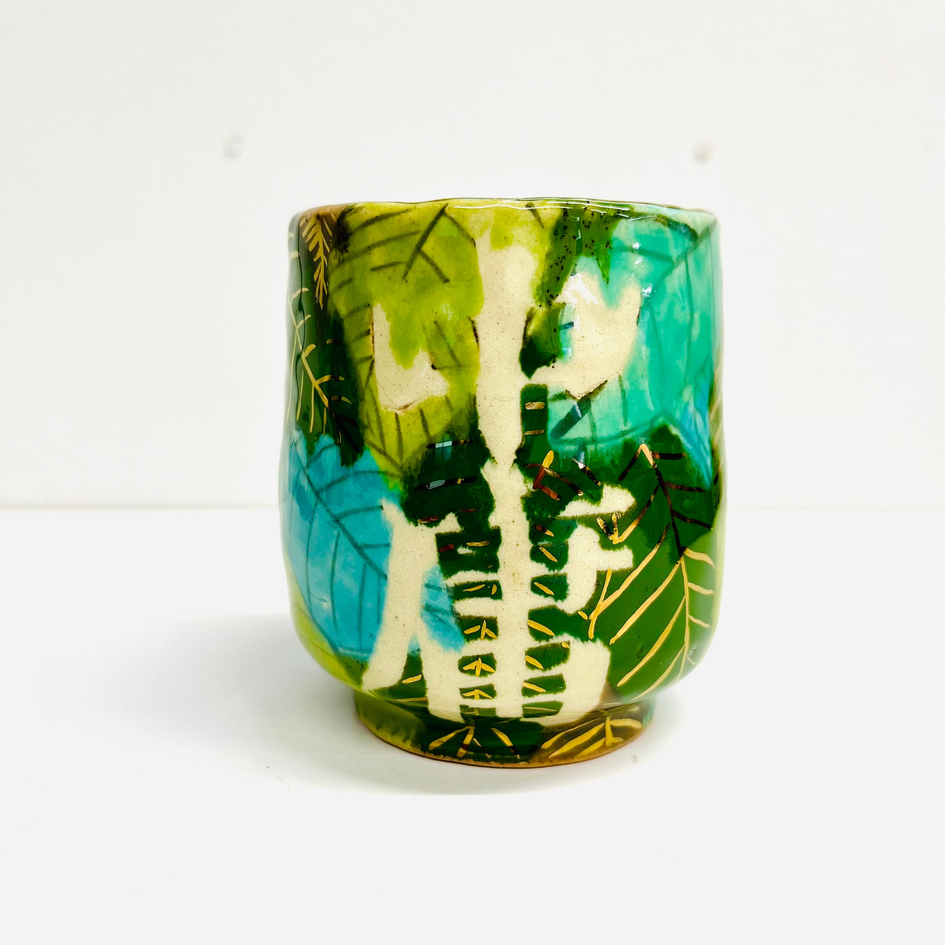 豪華な葉っぱに溢れる中庸湯呑みです。