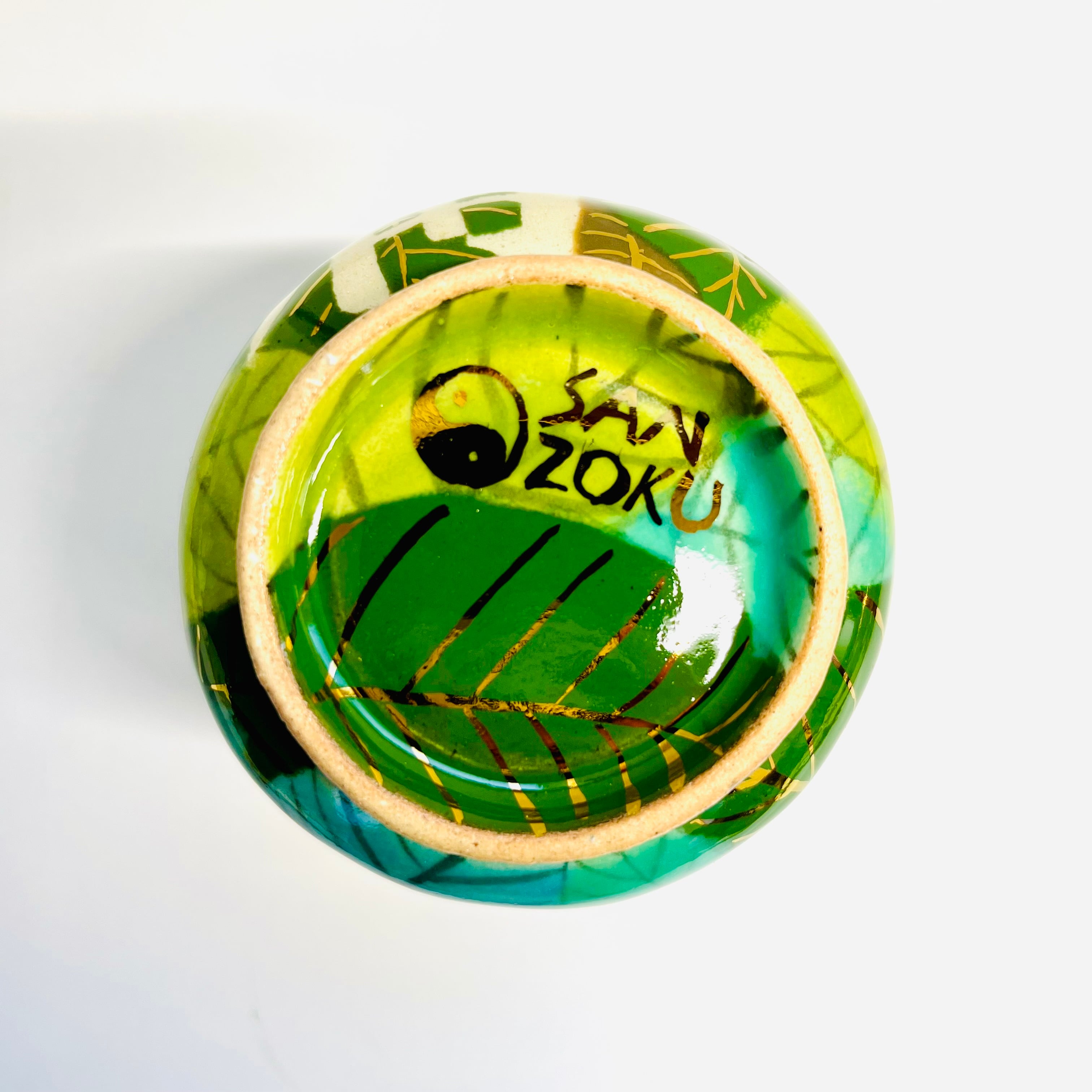 『sanzoku』は手びねりで作られている一点ものとなります。轆轤や、型などとの成形方法とは異なり手の指の力のみで土を圧縮して成形する為,