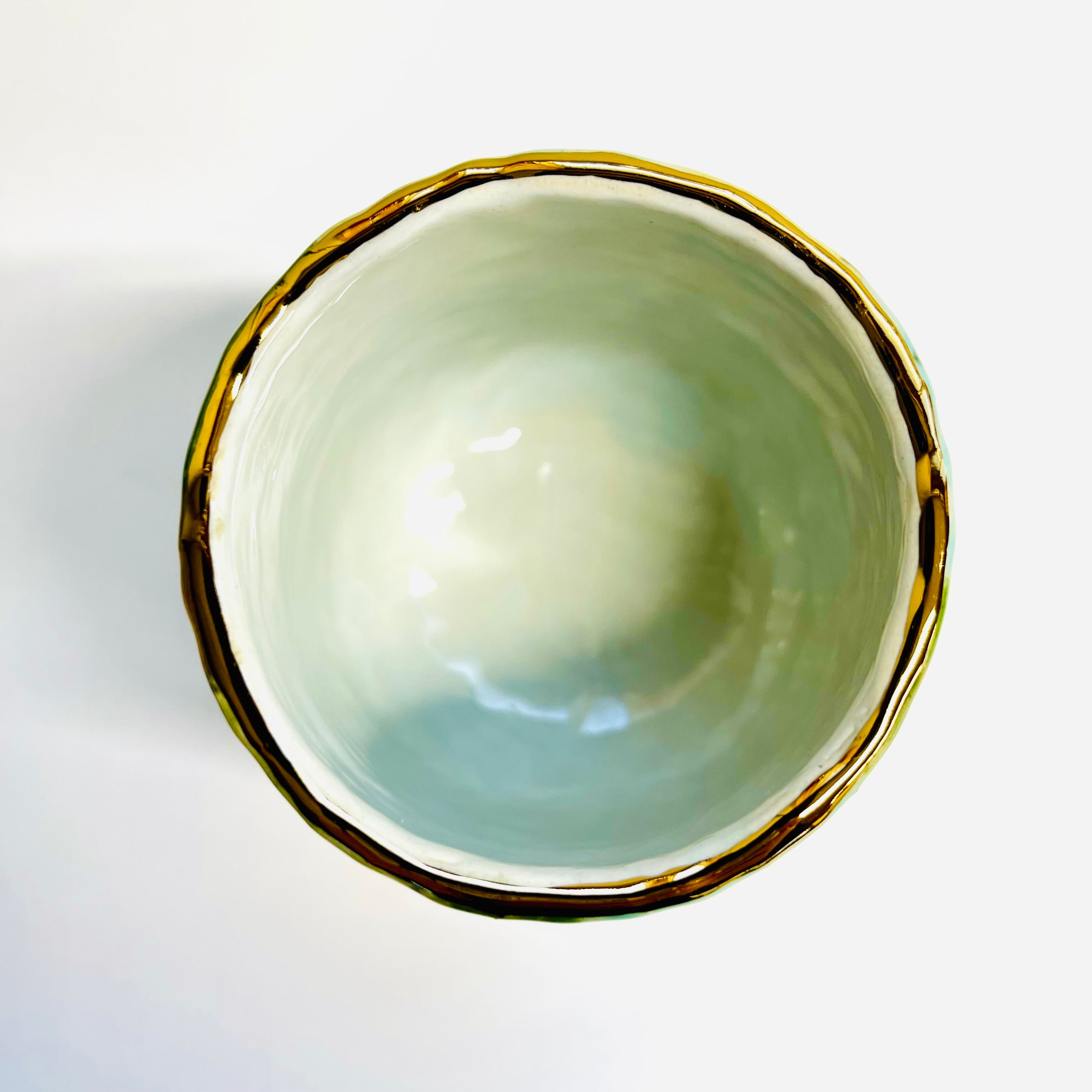 金や銀(金彩、銀彩)の部分に関しては、焼き付けてはおりますが、あくまで半永久の物になりますので、使用していると薄れてきたり色合いが変化したりします。また、固めのスポンジ等でで擦るととれてしまう事があります。時間の経過の雰囲気、味としてご理解頂けます様お願い致します。金彩の金の含有率は6%のものを使用しています。