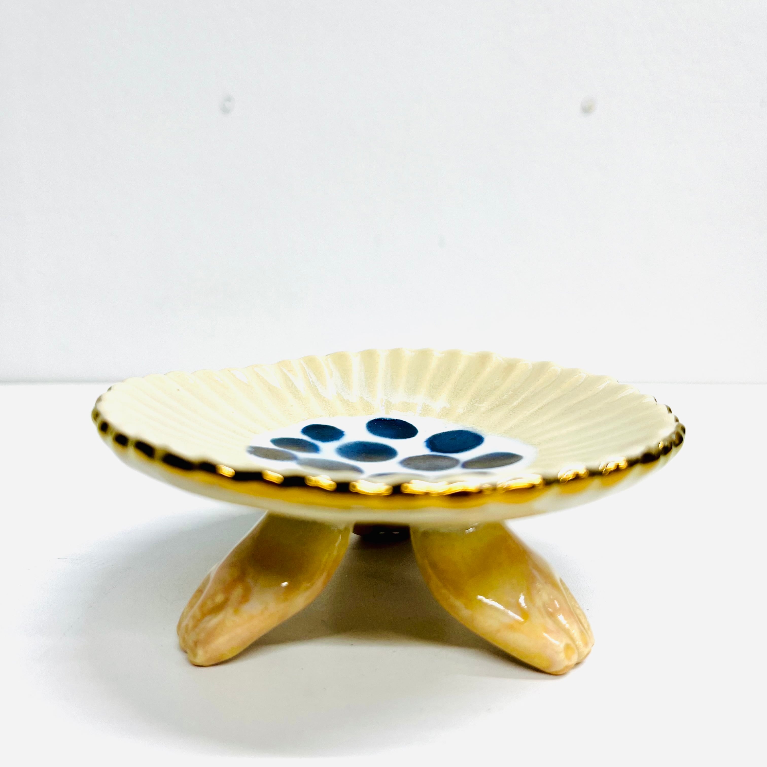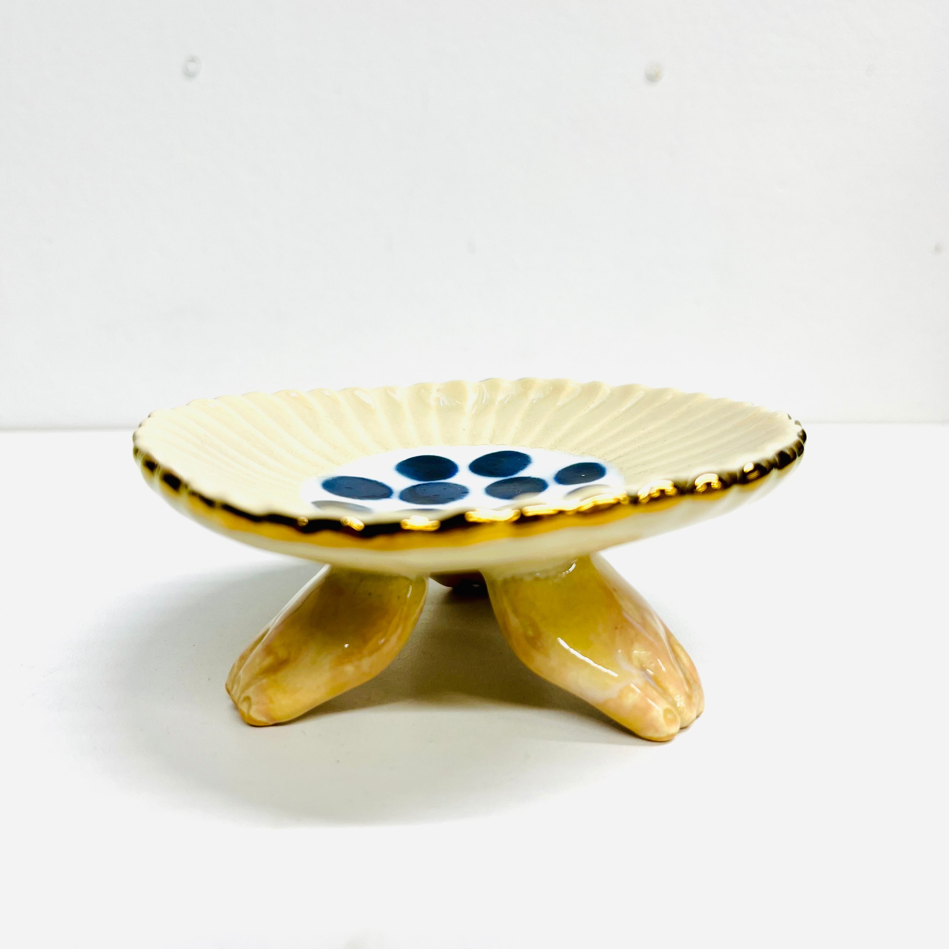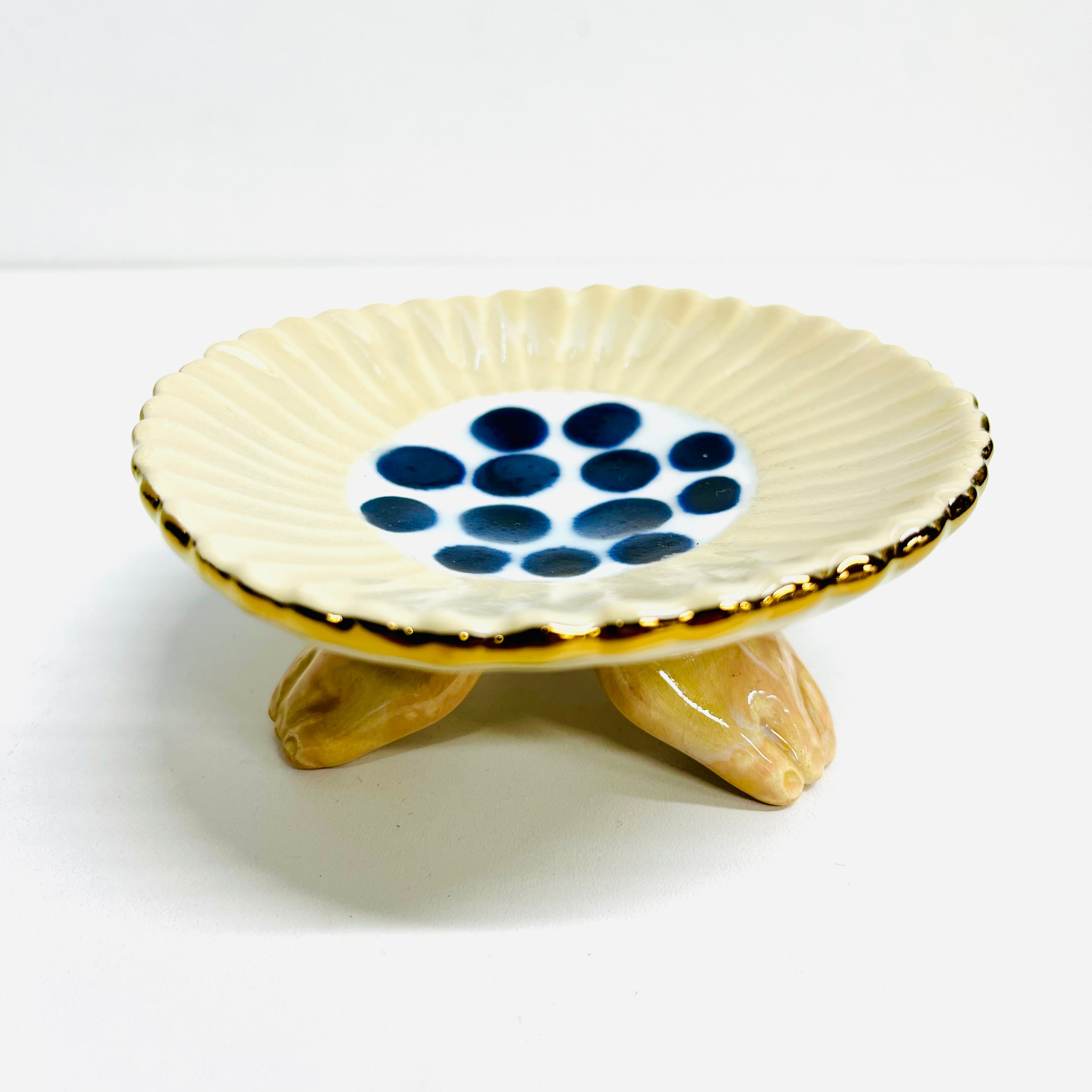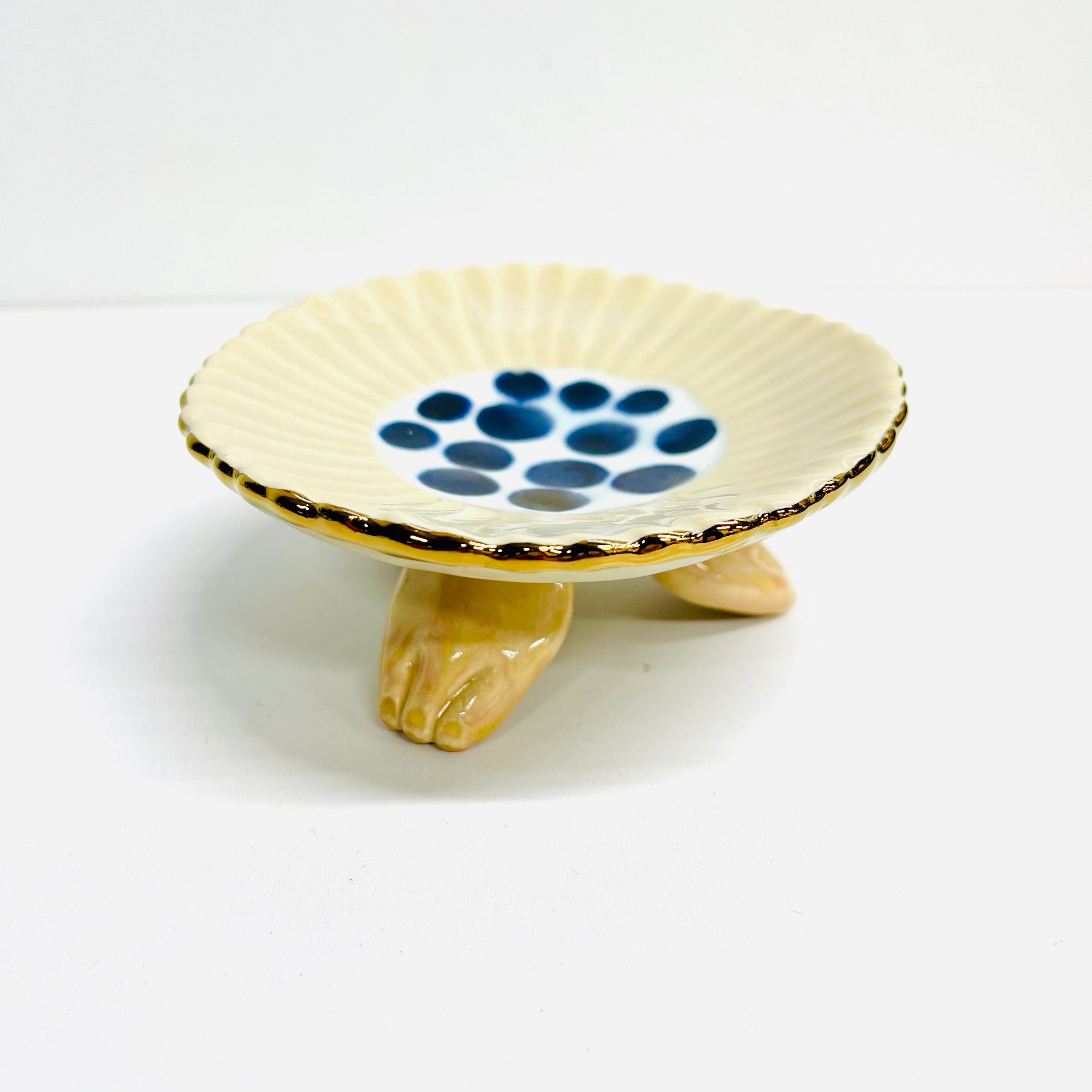 三つ足花小皿 クリーム