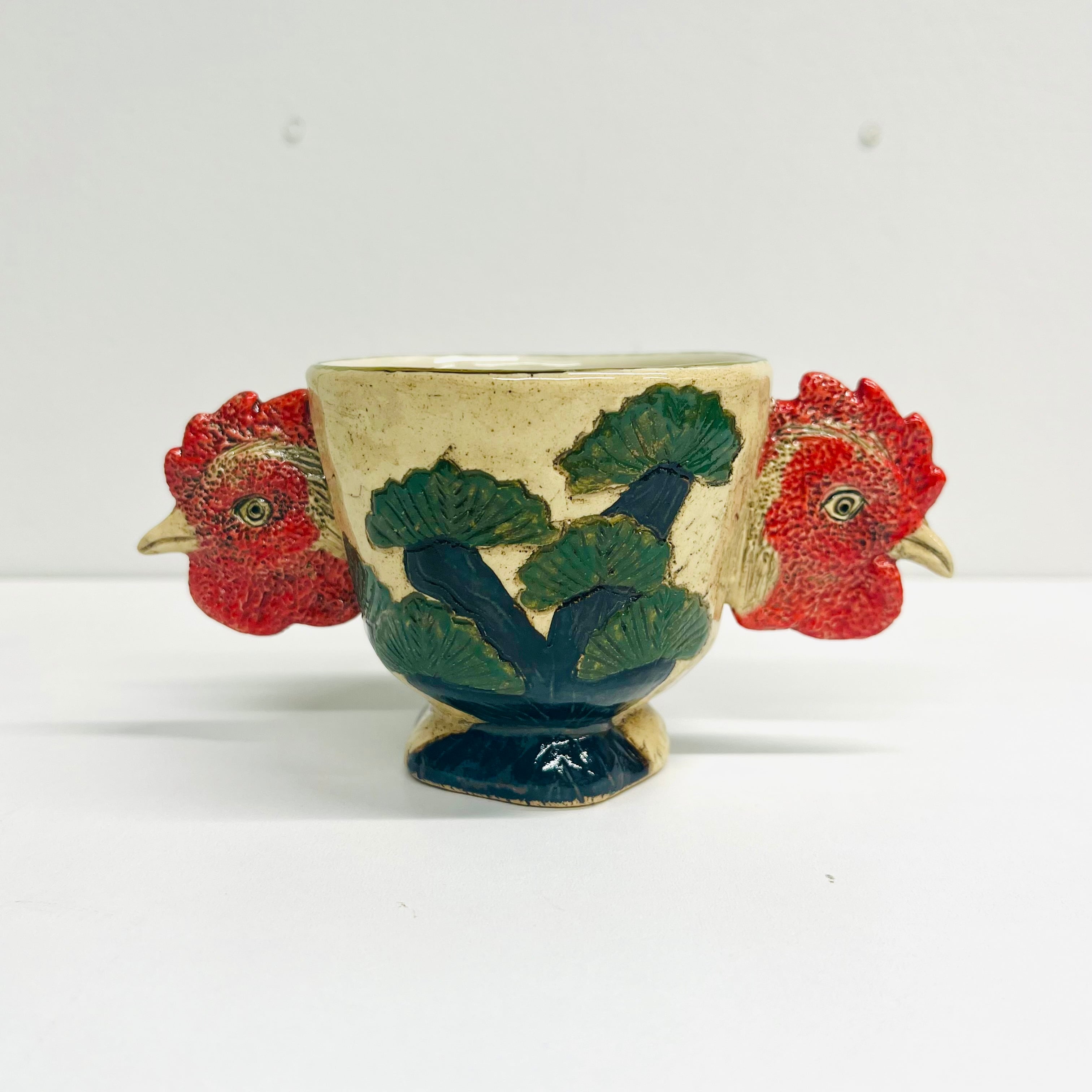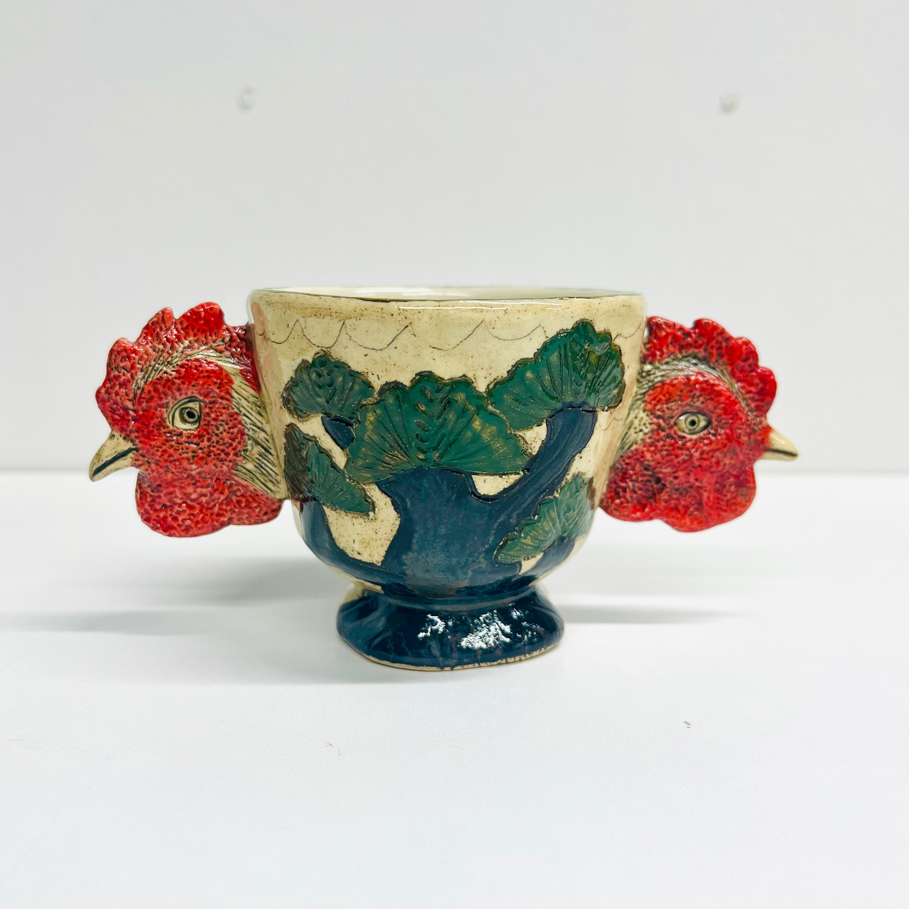「庭にわ二羽鶏がいるコップ」