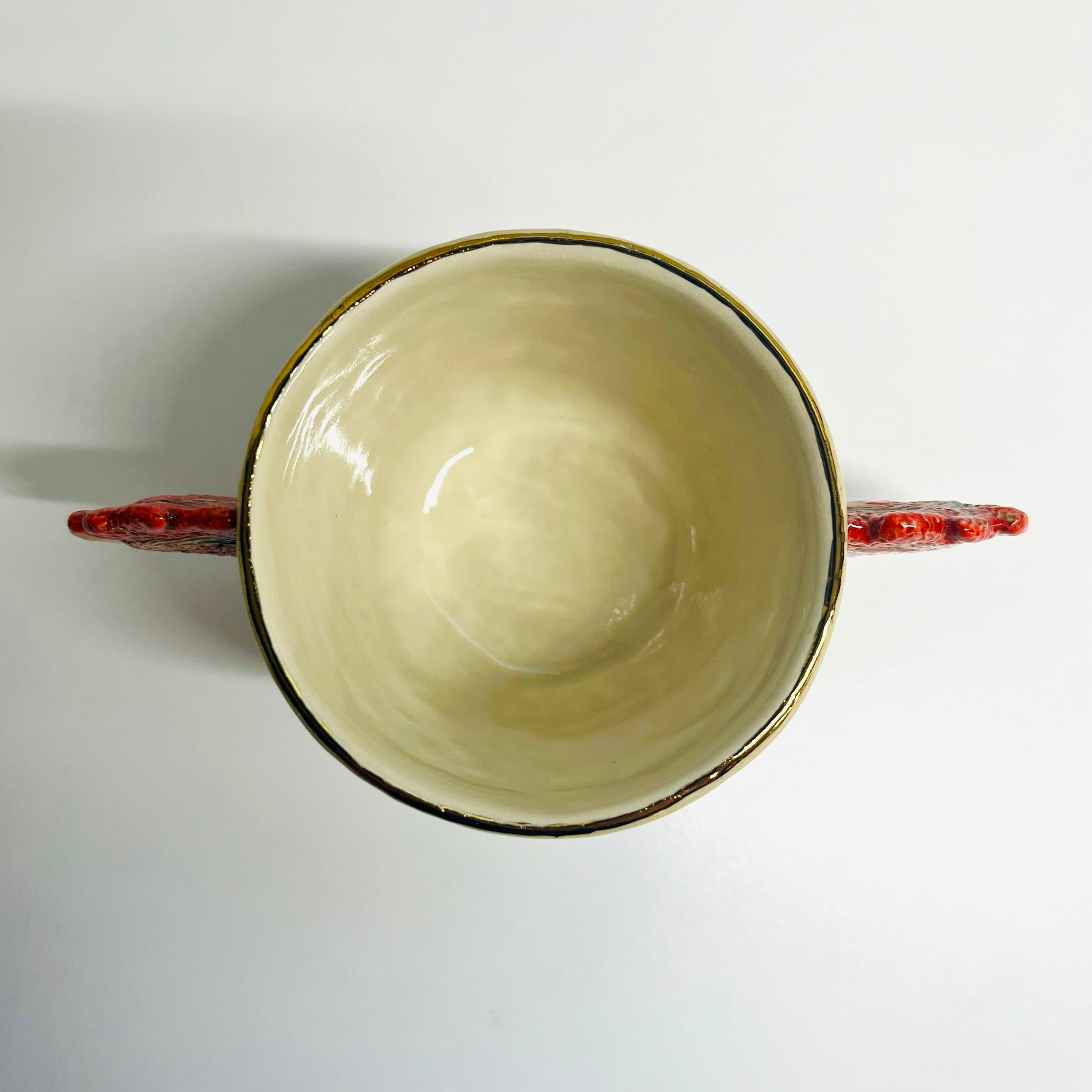 この『SANZOKU』は手びねりで製作された商品です。特に繊細な部分も含まれているため、取り扱いにはご注意ください。手洗いを推奨いたしますので、大切にお使いいただくためには、優しくお手入れをお願いいたします。