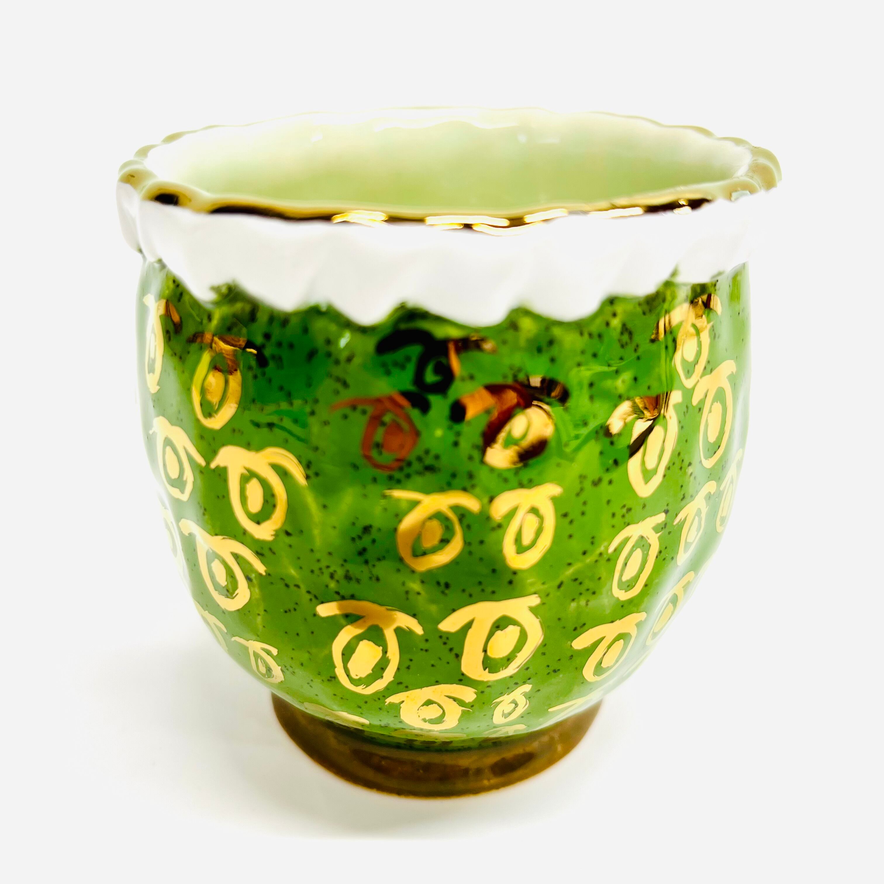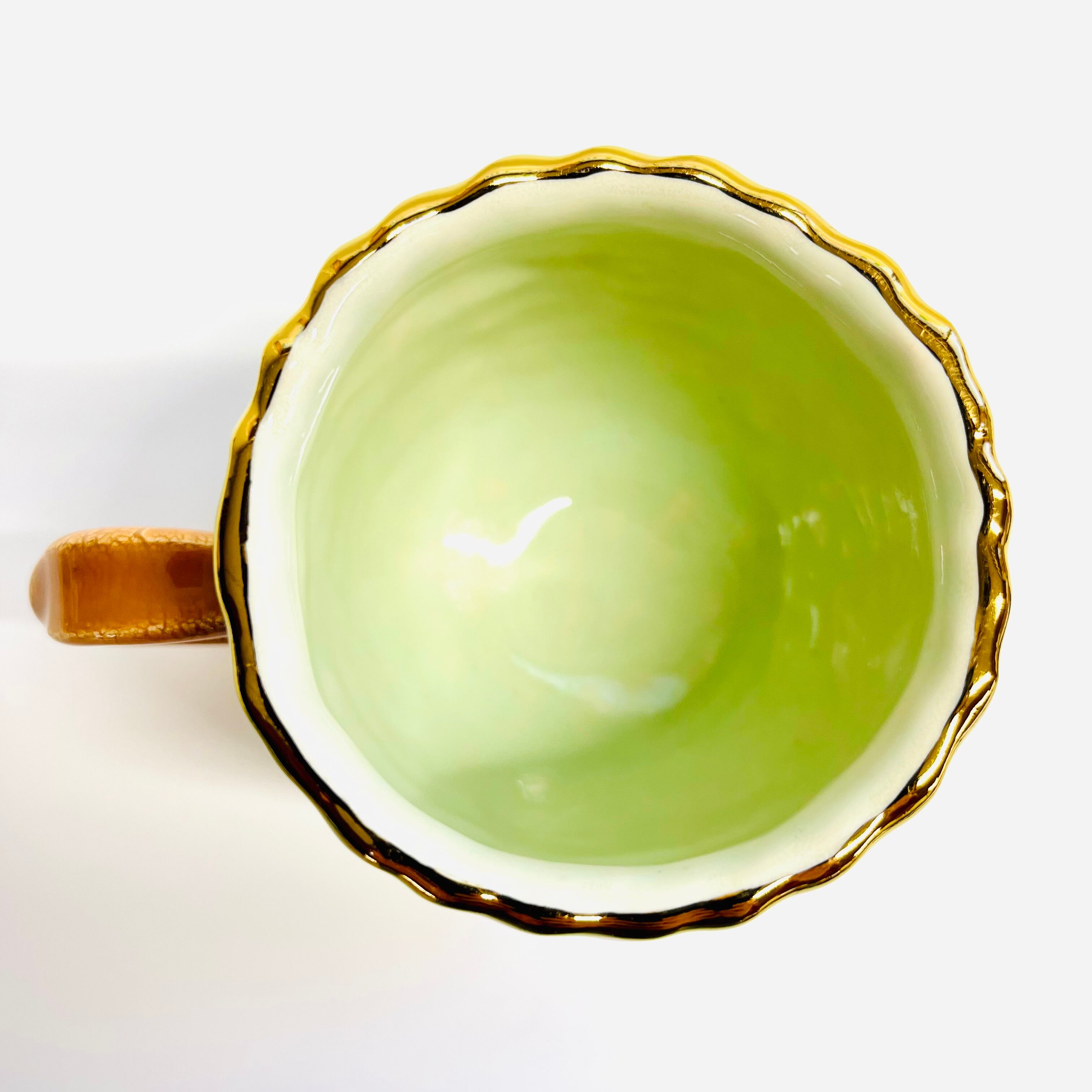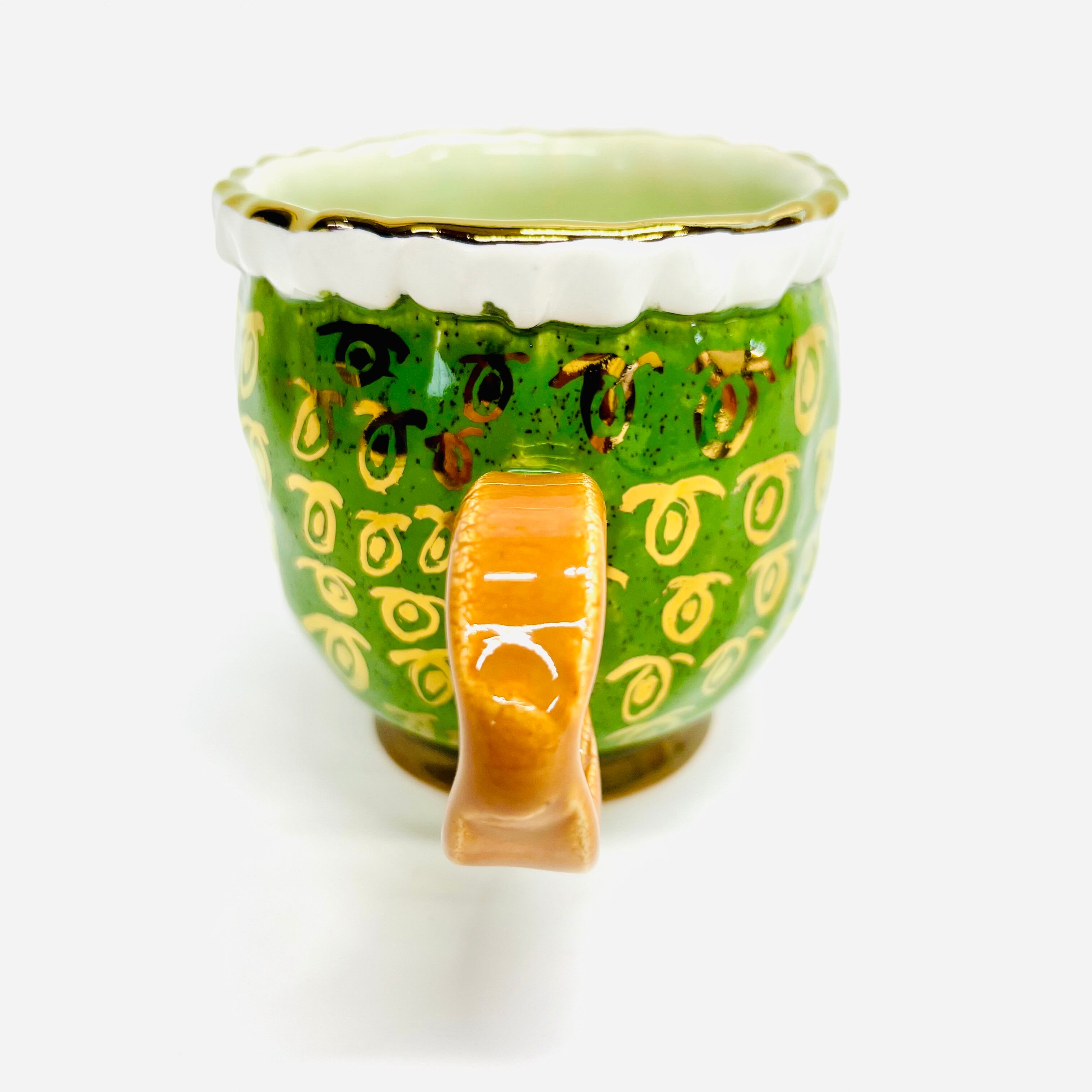 キウイ色の釉薬に種のつぶが金色に輝く一可愛いらしいカップです☆